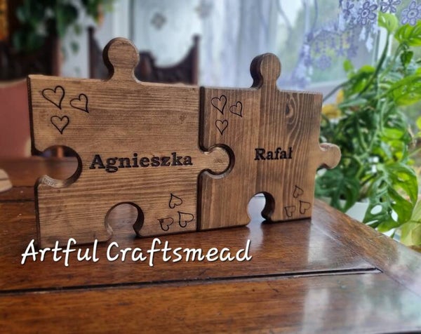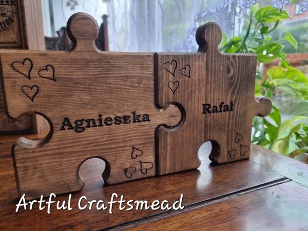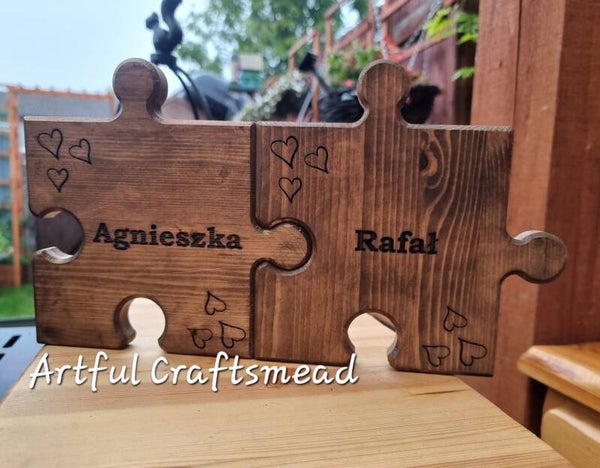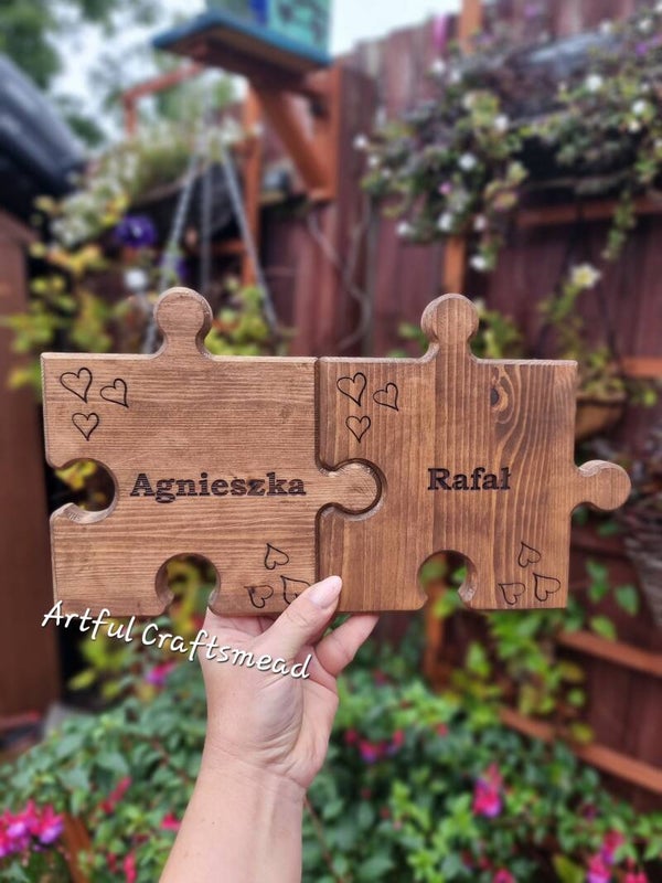 - **Personalized Engraving:** Each puzzle piece can be engraved with a name of your choice. Additionally, three discreet hearts are engraved in the corners, adding a touch of love and sentiment.