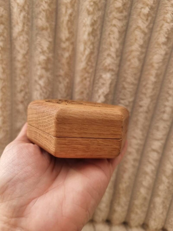 - **Handcrafted Oak Box:** Meticulously carved from solid oak, this hexagon-shaped box measures approximately 10x9cm on the outside, with an inner dimension of around 7x7.5x2cm. Each piece is unique, showcasing the natural beauty and character of the wood. 🌿✨