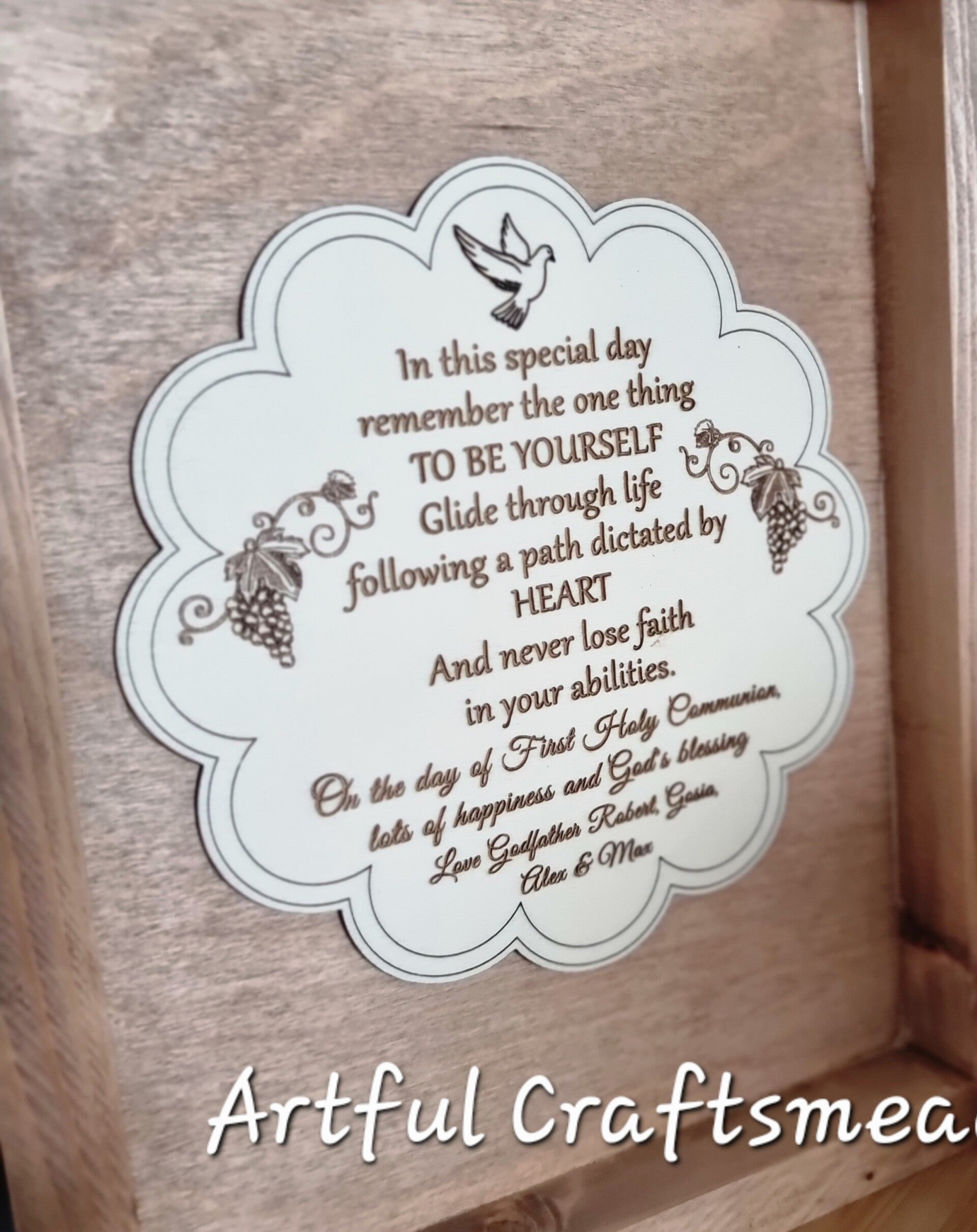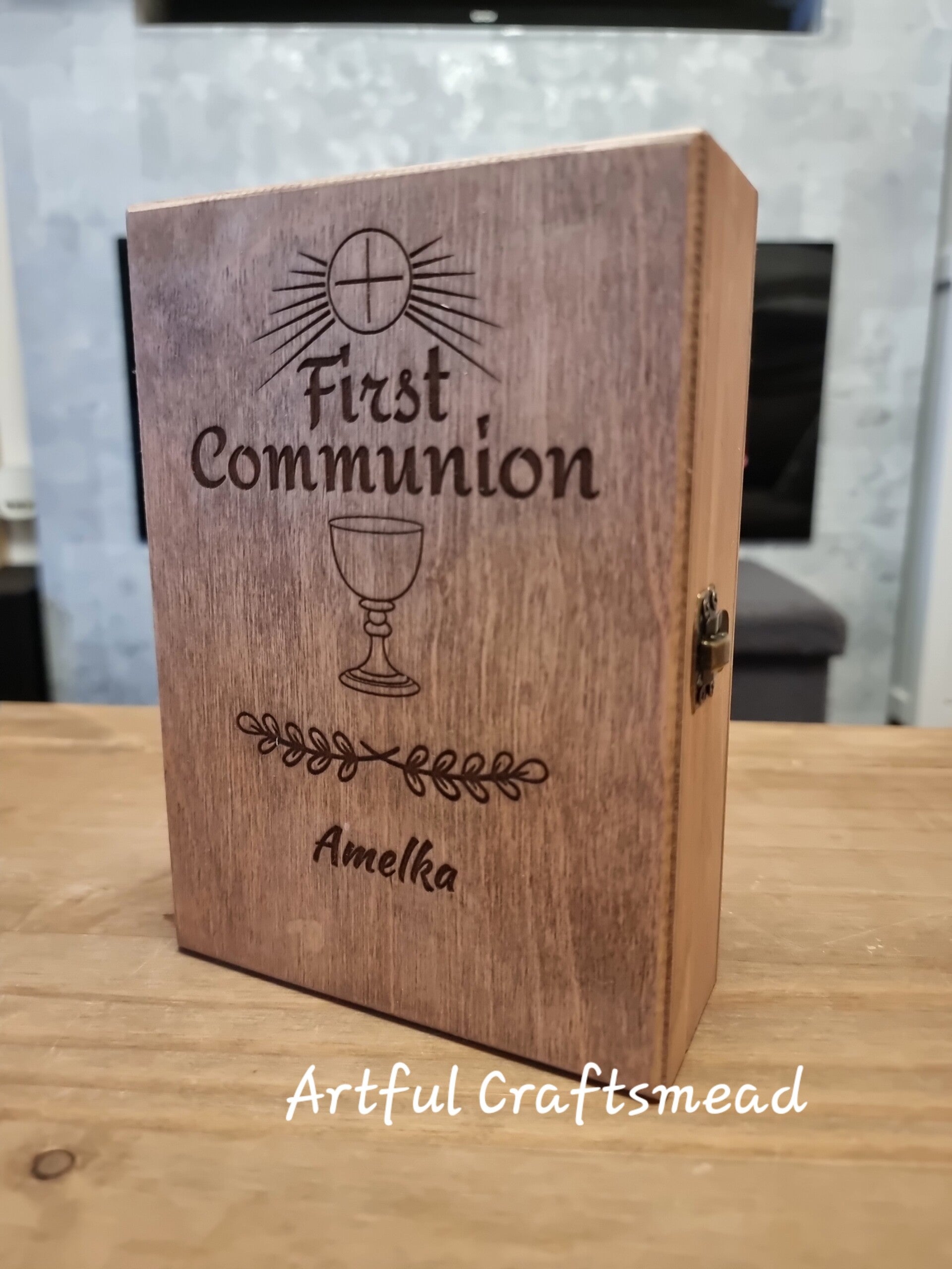 We can engrave a name, date or short saying on the box to make it even more special. It is a perfect gift for baptism, communion, wedding or other important occasion.