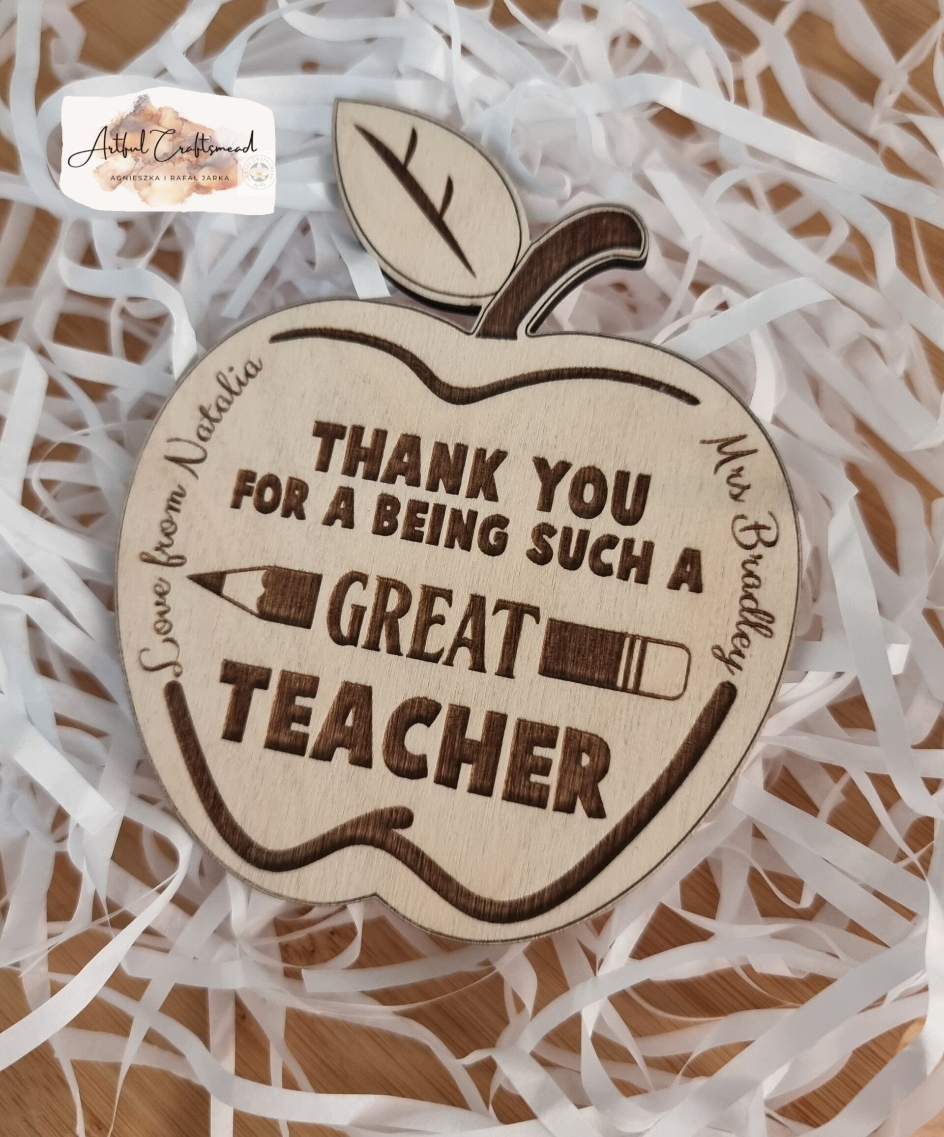- 🍎 **Thank You Teacher Gift: Personalized Wooden Apple Magnets**