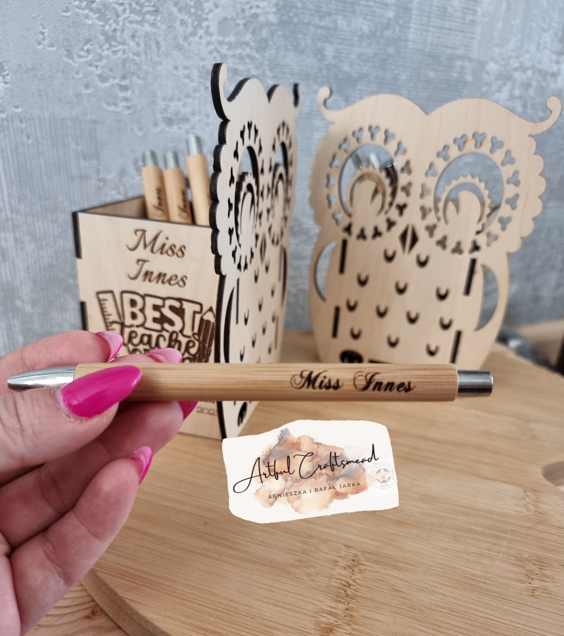 - **Podziękowanie dla nauczyciela**: Świętuj „Najlepszego nauczyciela wszechczasów” dzięki spersonalizowanemu organizerowi w kształcie sowy. Wystarczy, że podasz imię i nazwisko nauczyciela, a my je pięknie wygrawerujemy.