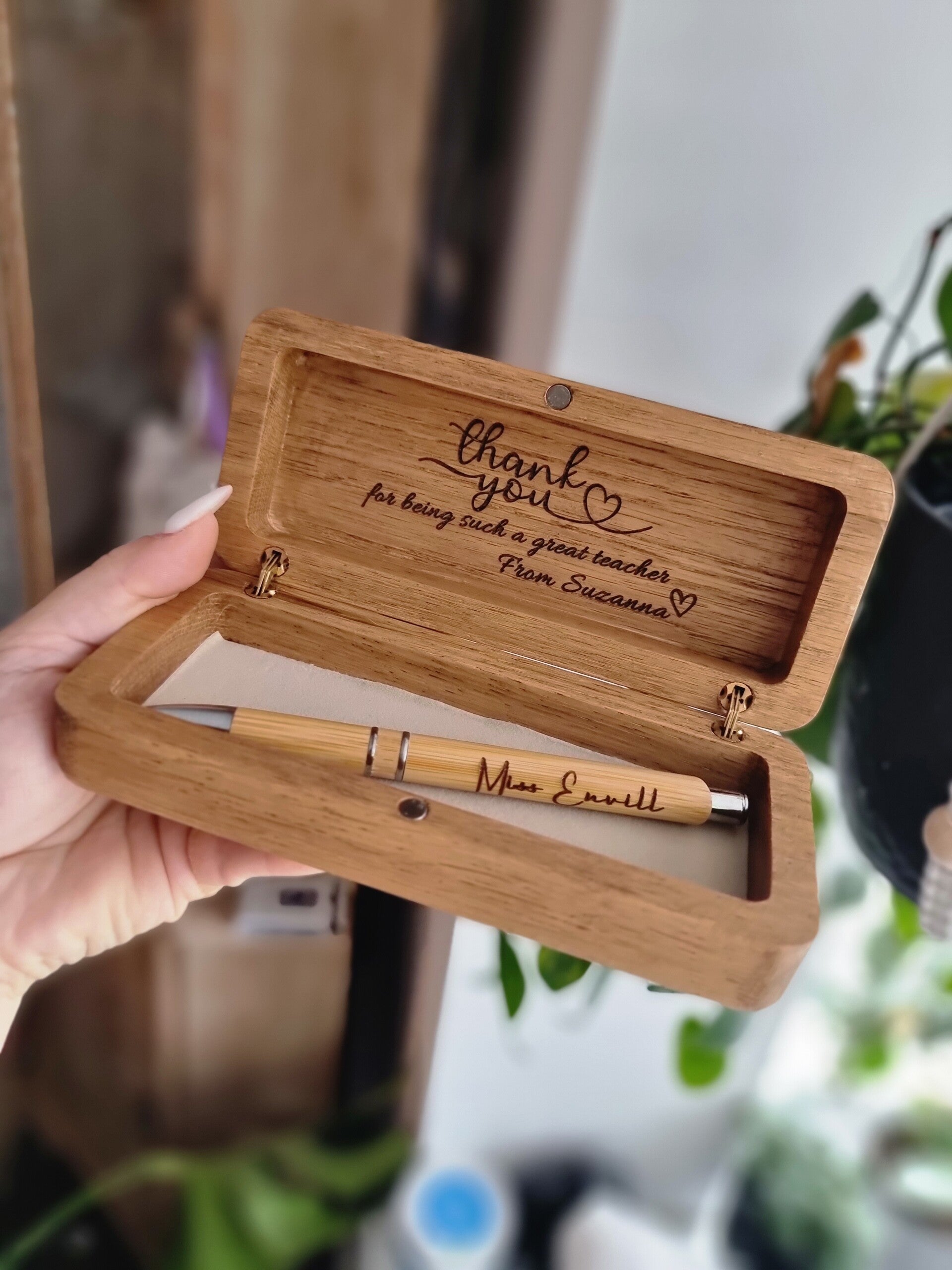 Elegant Oak Wood Pencil Cases: Crafted with Care, Custom Oak Box For All Occasion, With Name and Message,