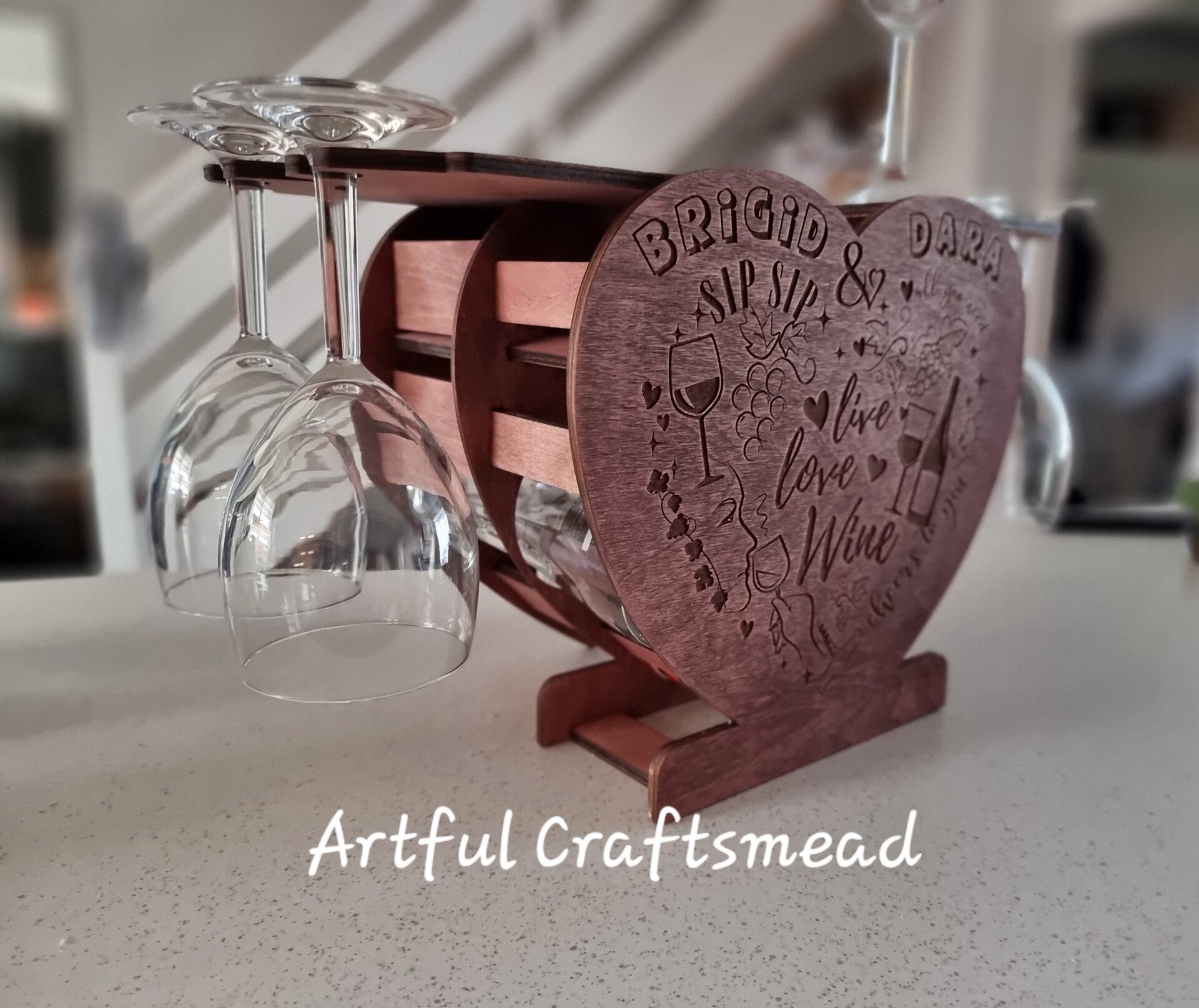 🍷 **Heart-Shaped Personalized Wine and Glass Holder Stand** 🍷