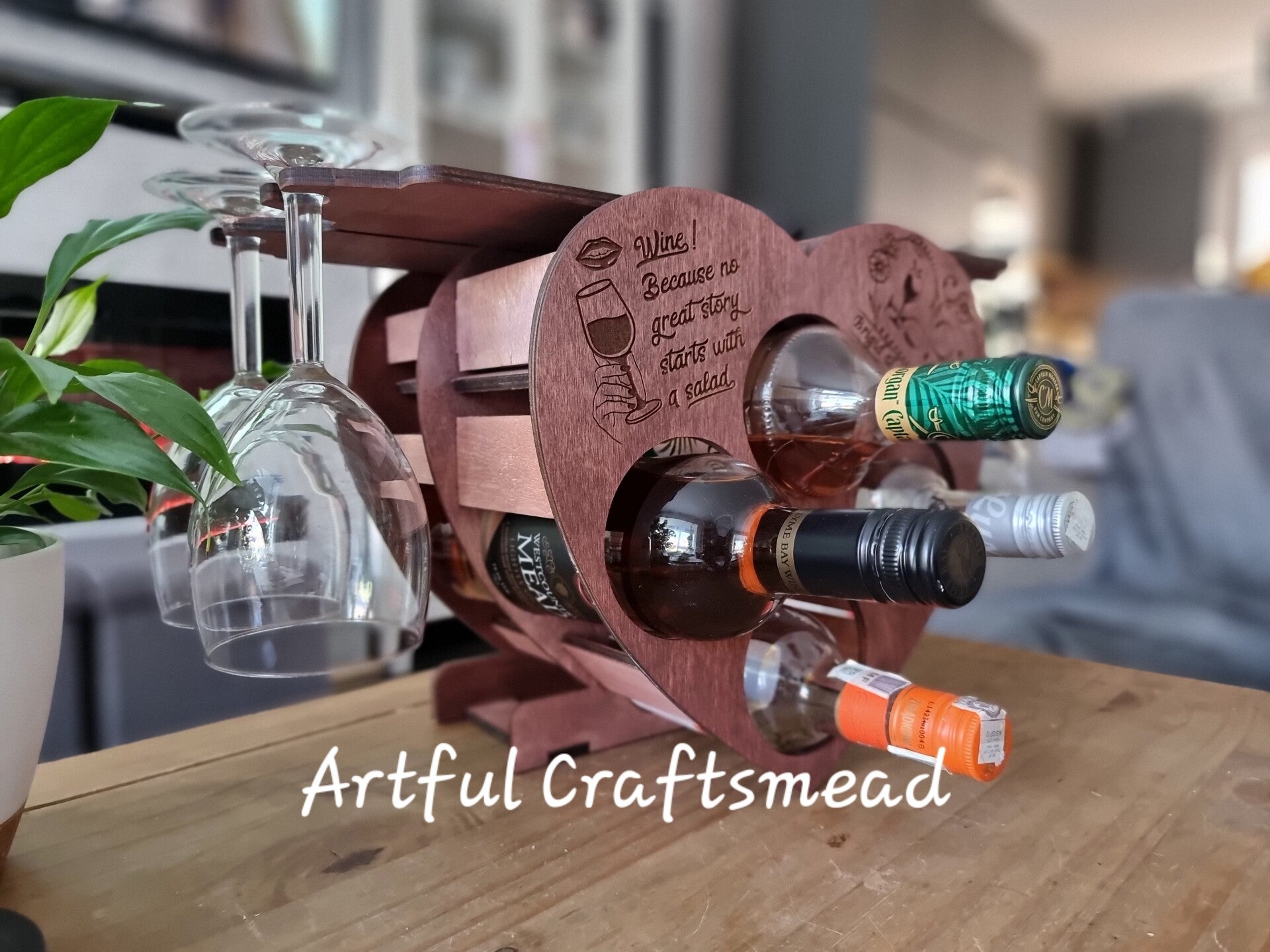 Celebrate love and create unforgettable moments with our custom-made heart-shaped wine and glass holder stand! Crafted entirely from 6mm plywood, this unique piece is perfect for weddings, anniversaries, or romantic evenings. Here are the details: