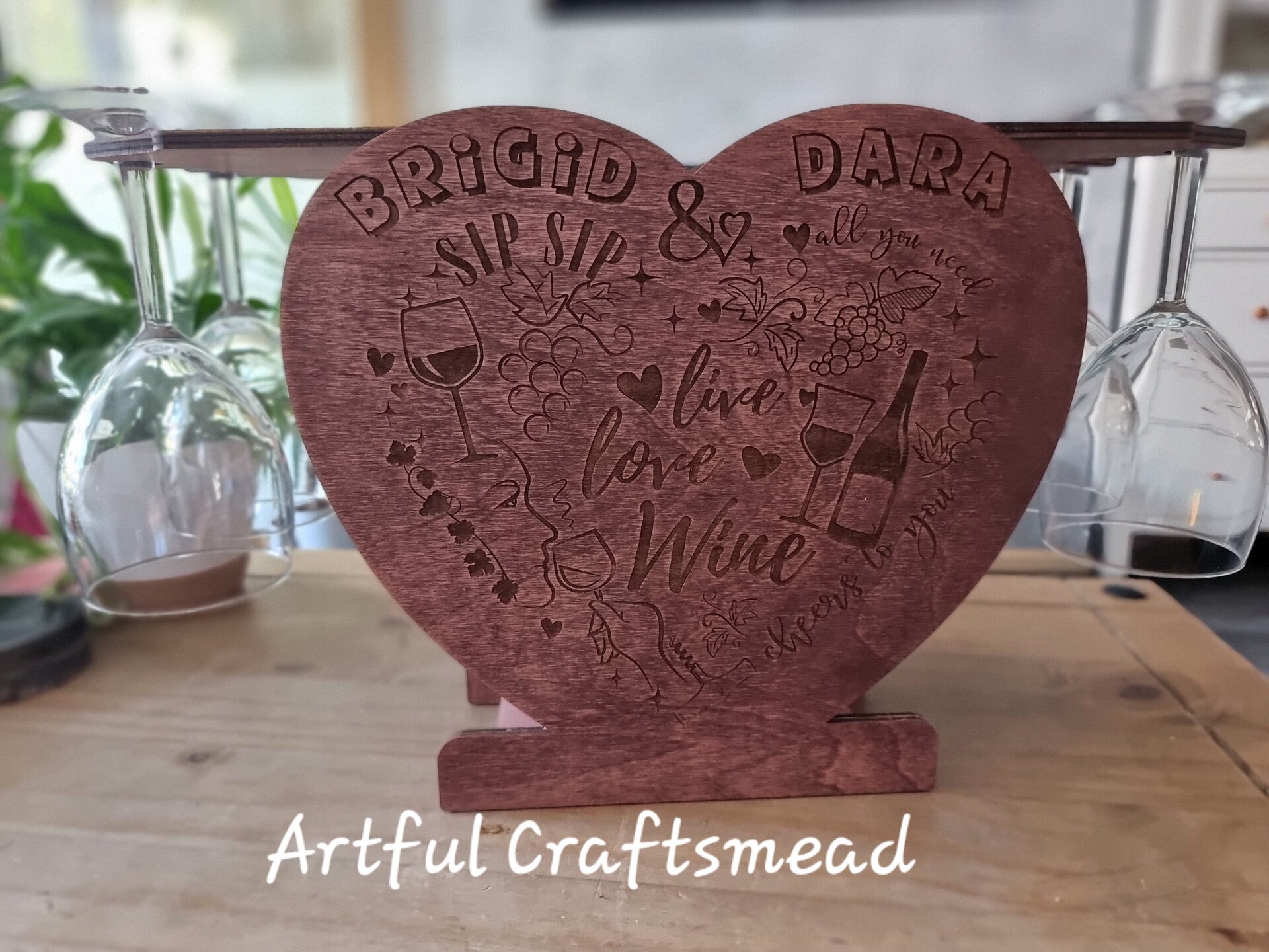 Heart-Shaped Personalized Wine and Glass Holder Stand, Wedding, Anniversary, Engagement Gift, Home Decor,