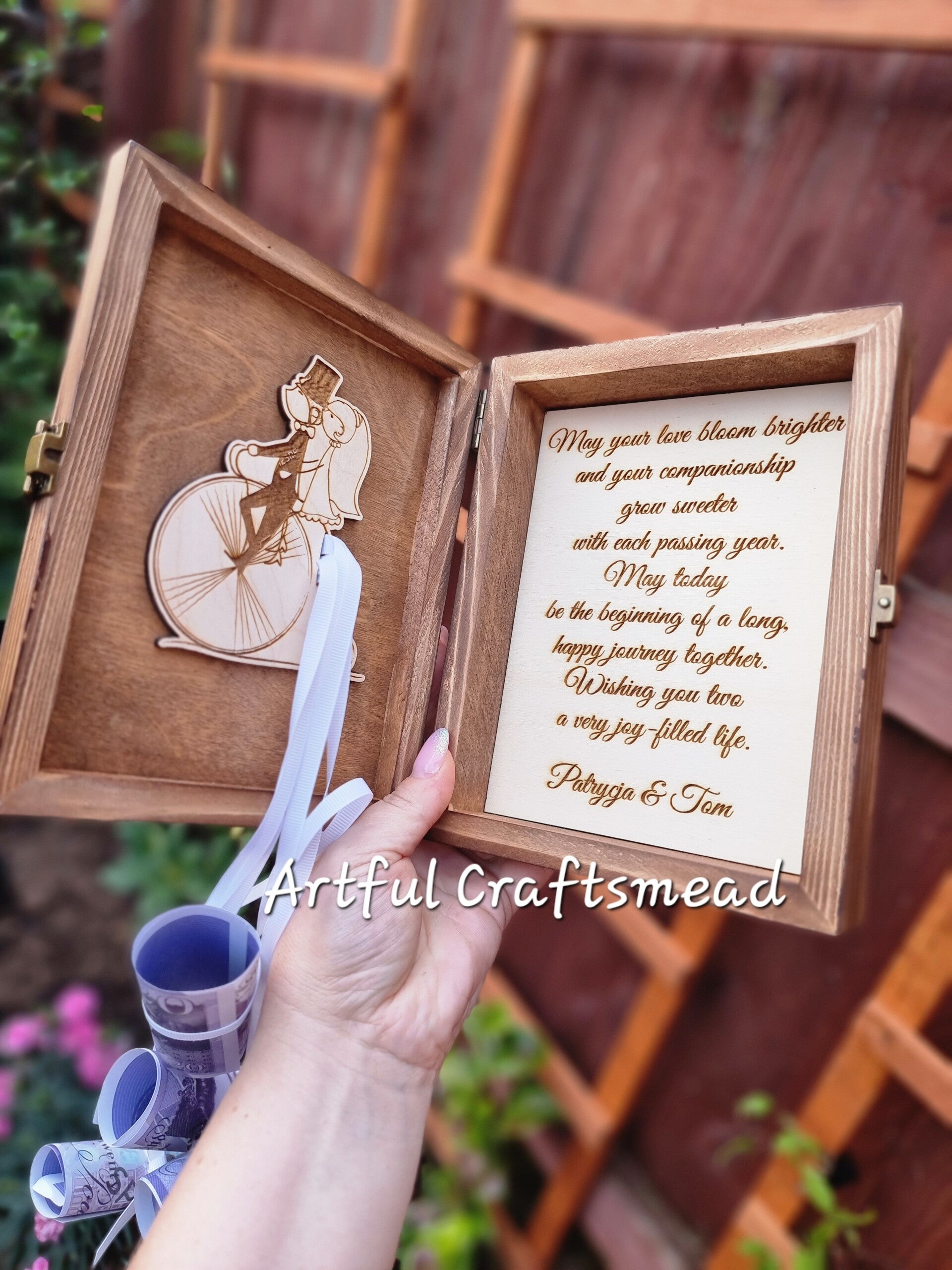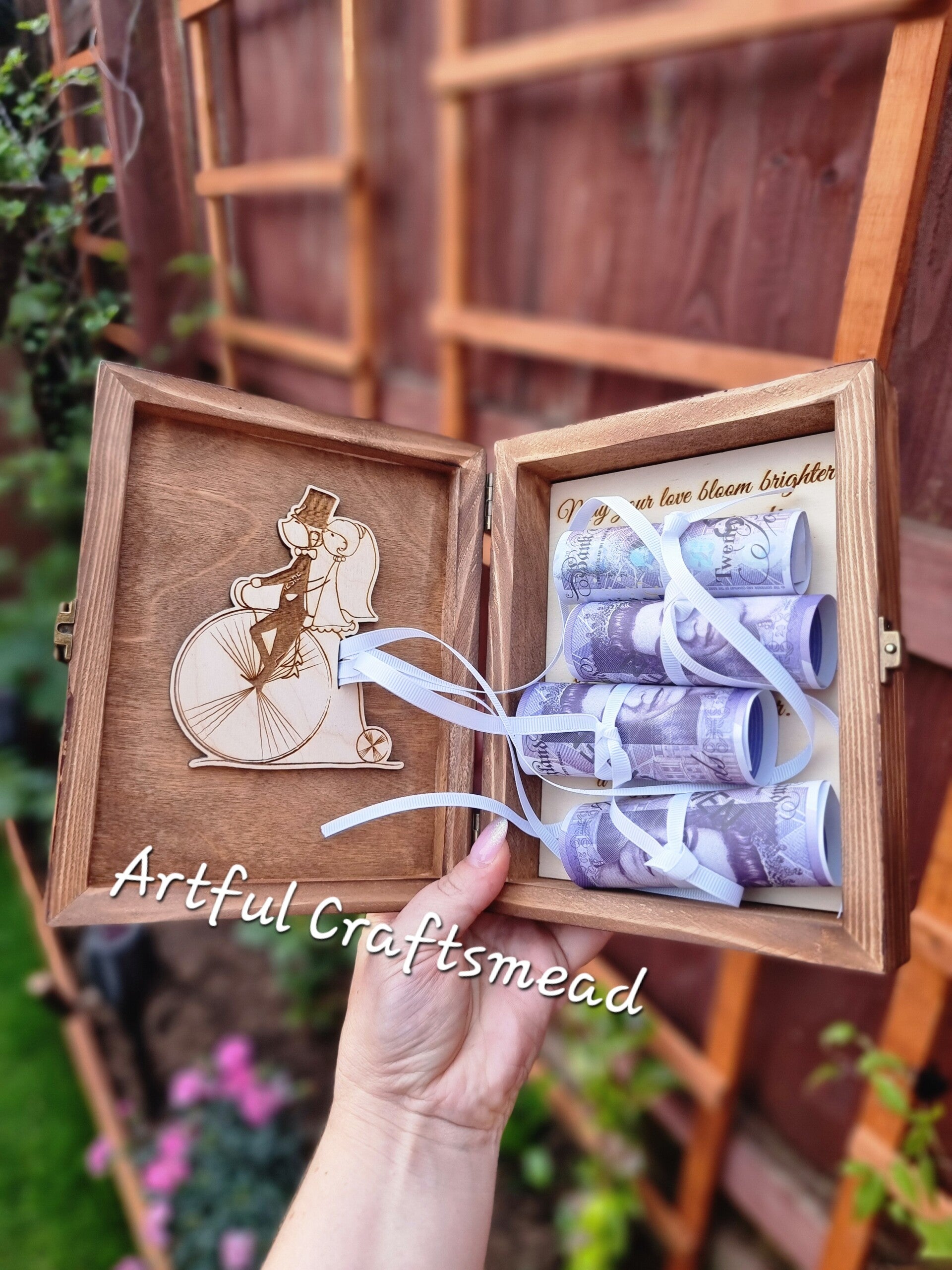 Wooden Wedding Box, Unique Way To Give Money as a wedding gift, our personalised money gift holder includes your personalised message,