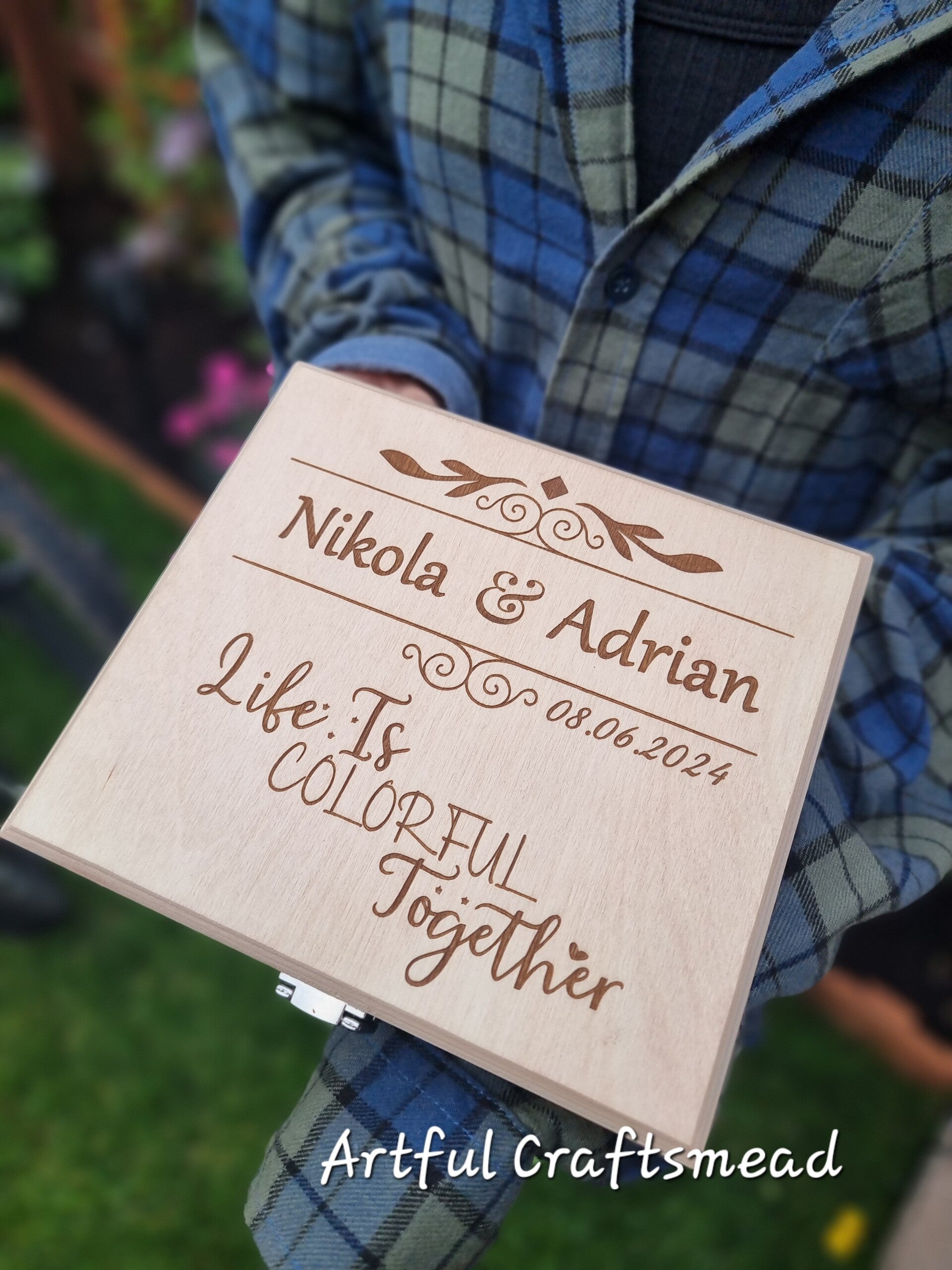 Are you looking for a heartfelt and personalized wedding gift? Look no further! Our handcrafted wooden money box is the ideal choice for celebrating love and commitment. Let me tell you all about it: