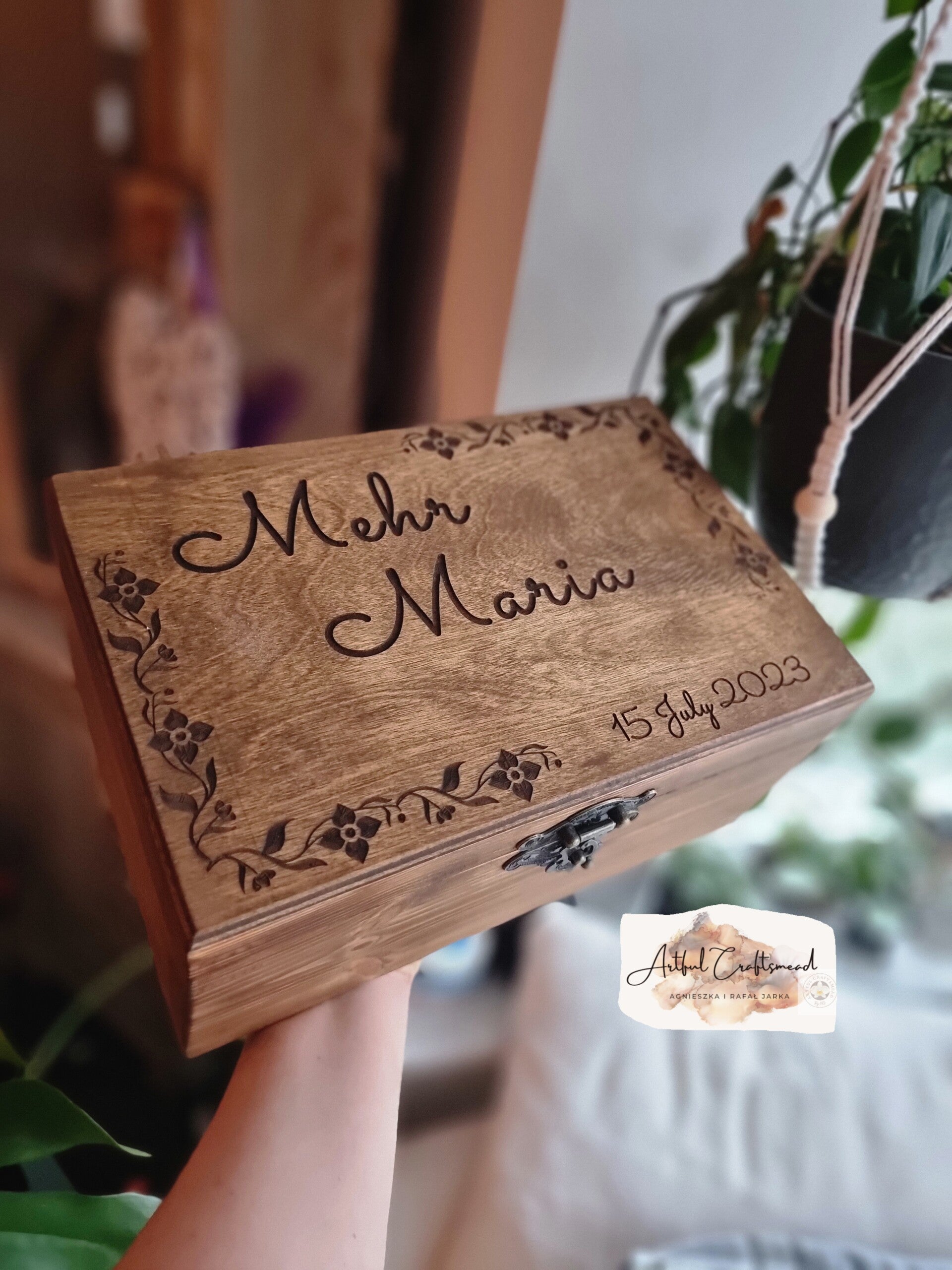 Personalise your keepsake box with a name/names and last name and date (it can be without date)