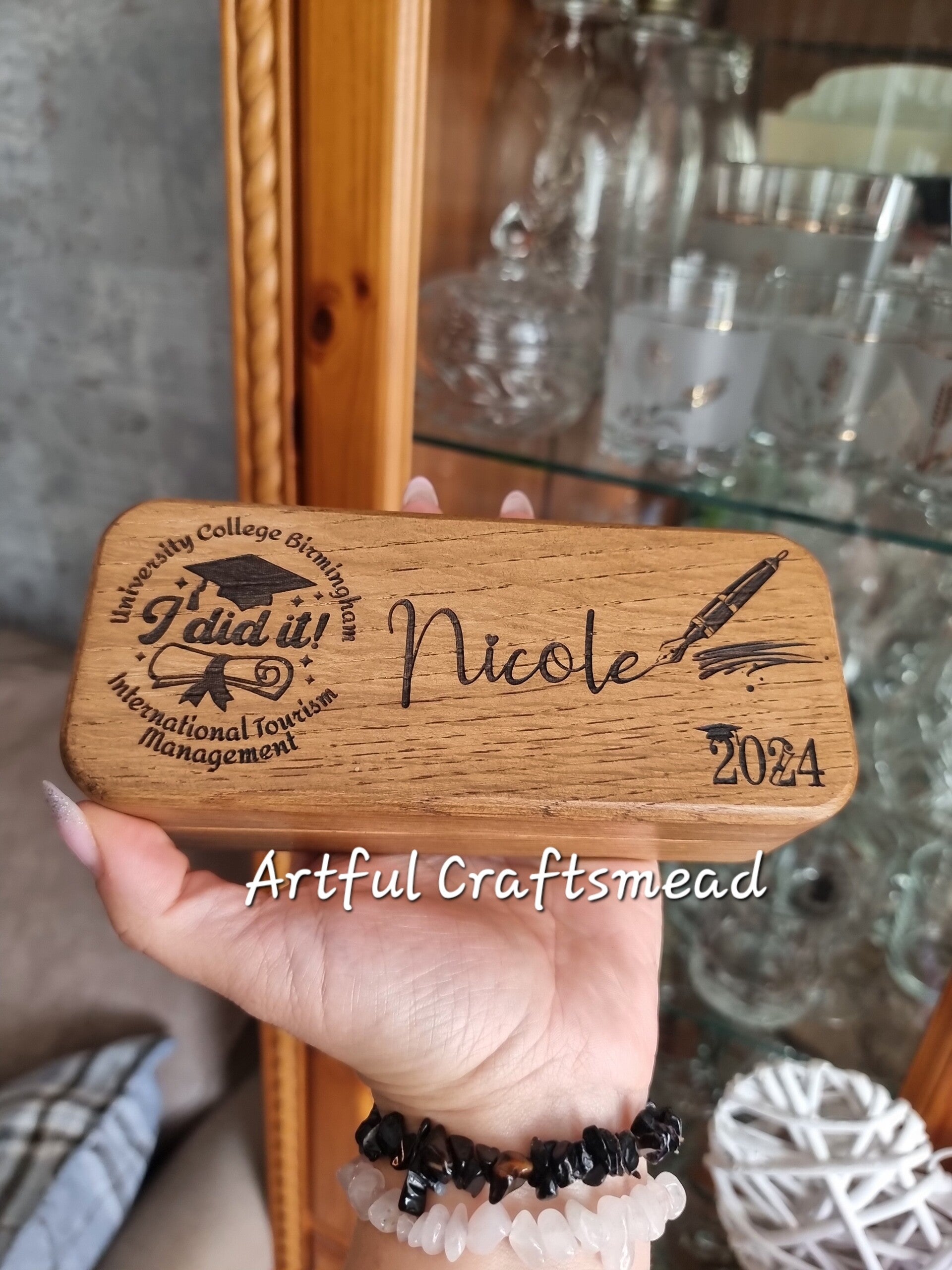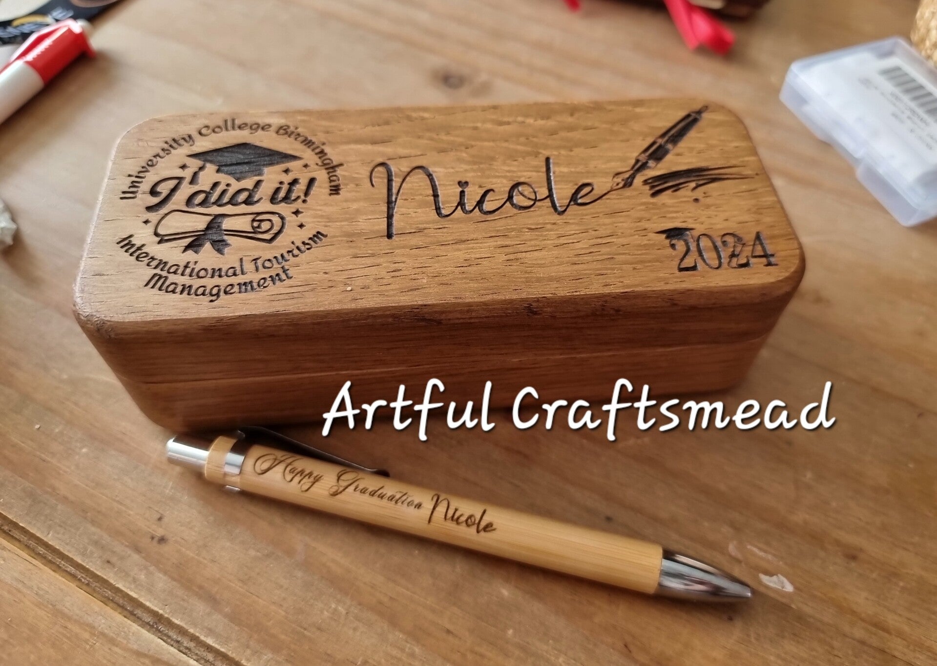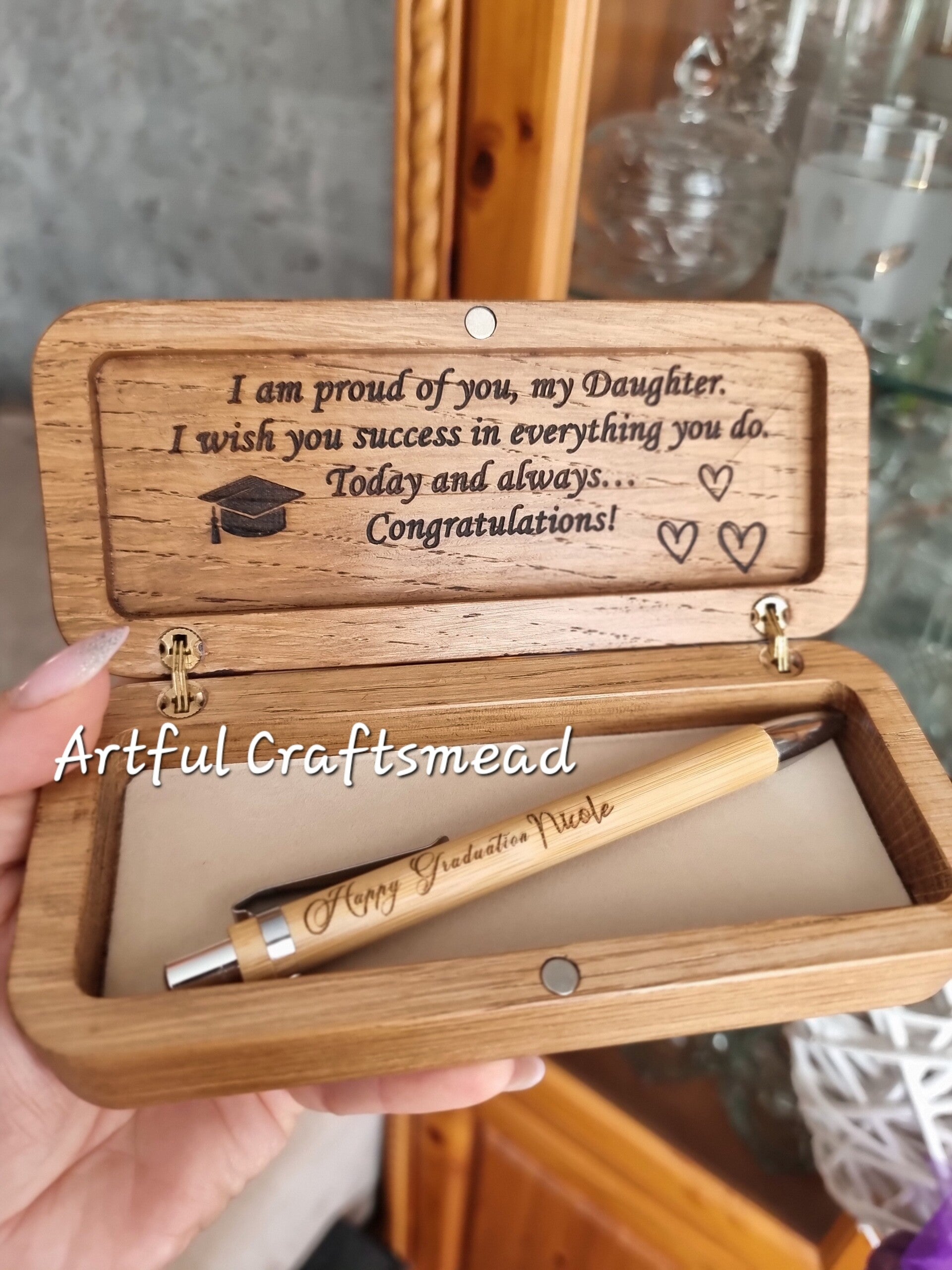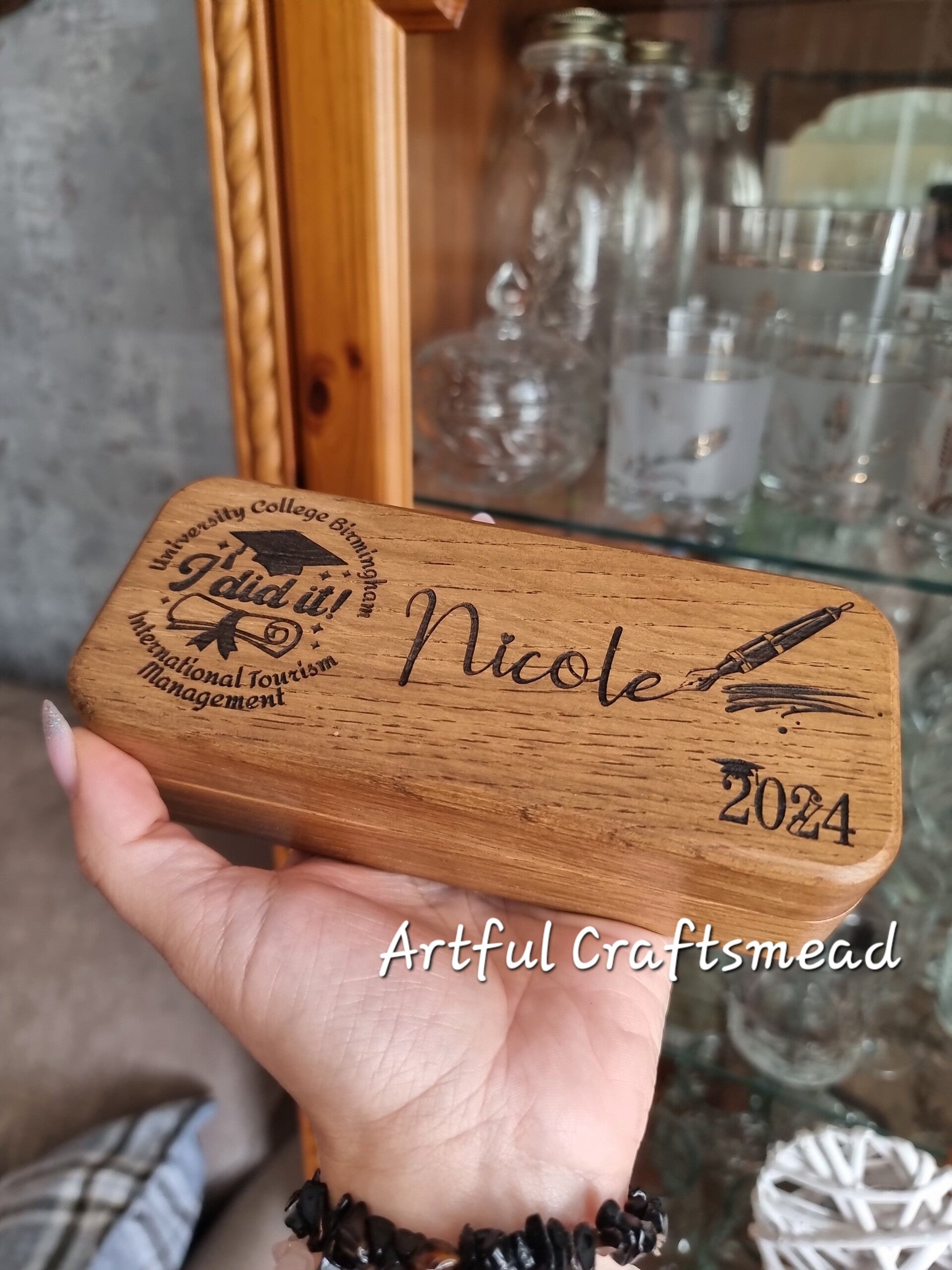 Looking for a unique and thoughtful graduation gift? Our personalized oak pencil case with a matching wooden pen is the perfect choice! 🎓✨