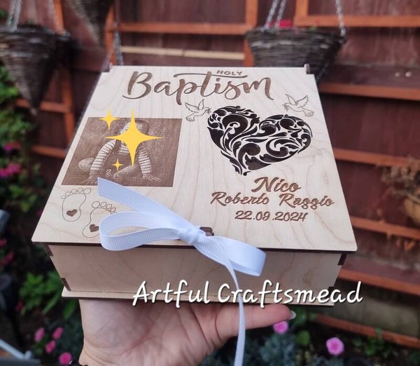 Personalized Wooden Box With Name Date and Photo Engraved, For Baptism Gift
