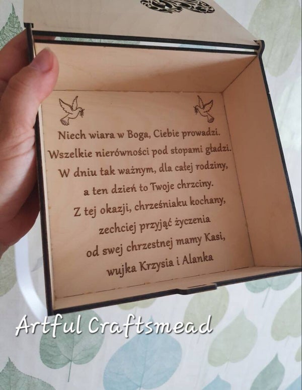 We're thrilled to introduce our latest product: **square plywood keepsake boxes**! These special boxes are perfect for commemorating **baptism** and preserving cherished memories. Here are the delightful details: