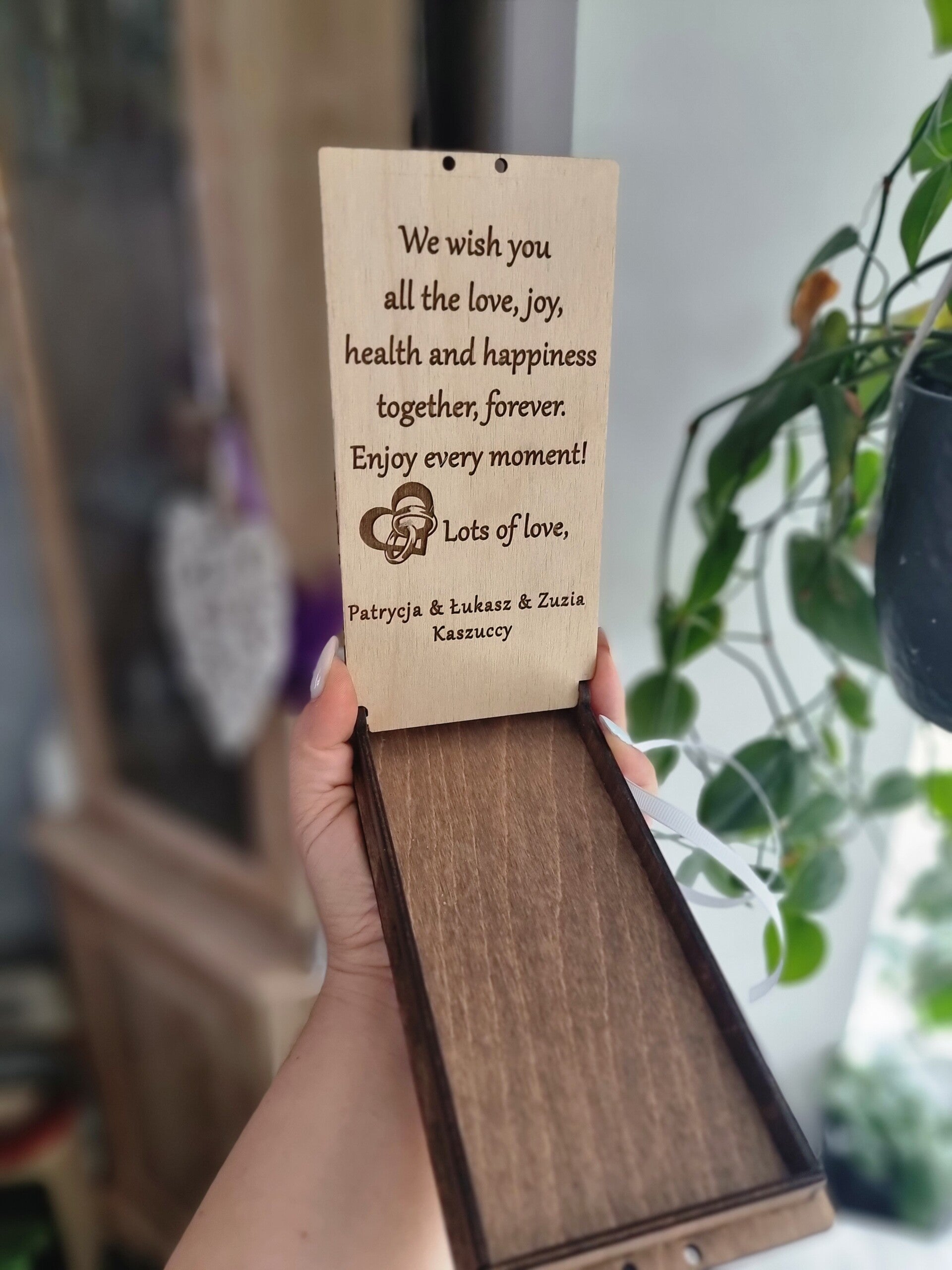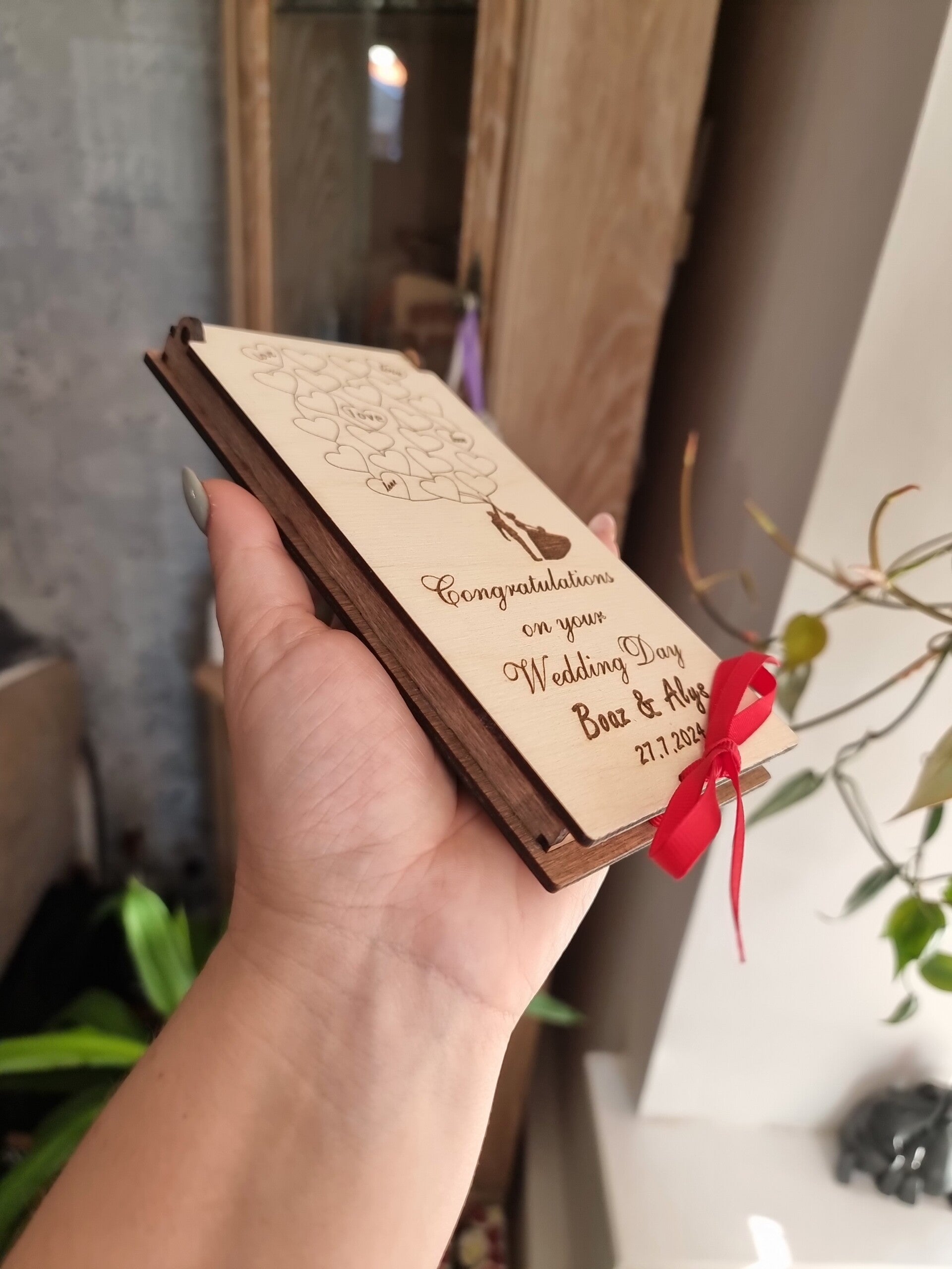 Introducing our charming plywood money box, perfect for weddings and special occasions. This low-profile, flat box is meticulously crafted from high-quality plywood, making it a unique and thoughtful gift.