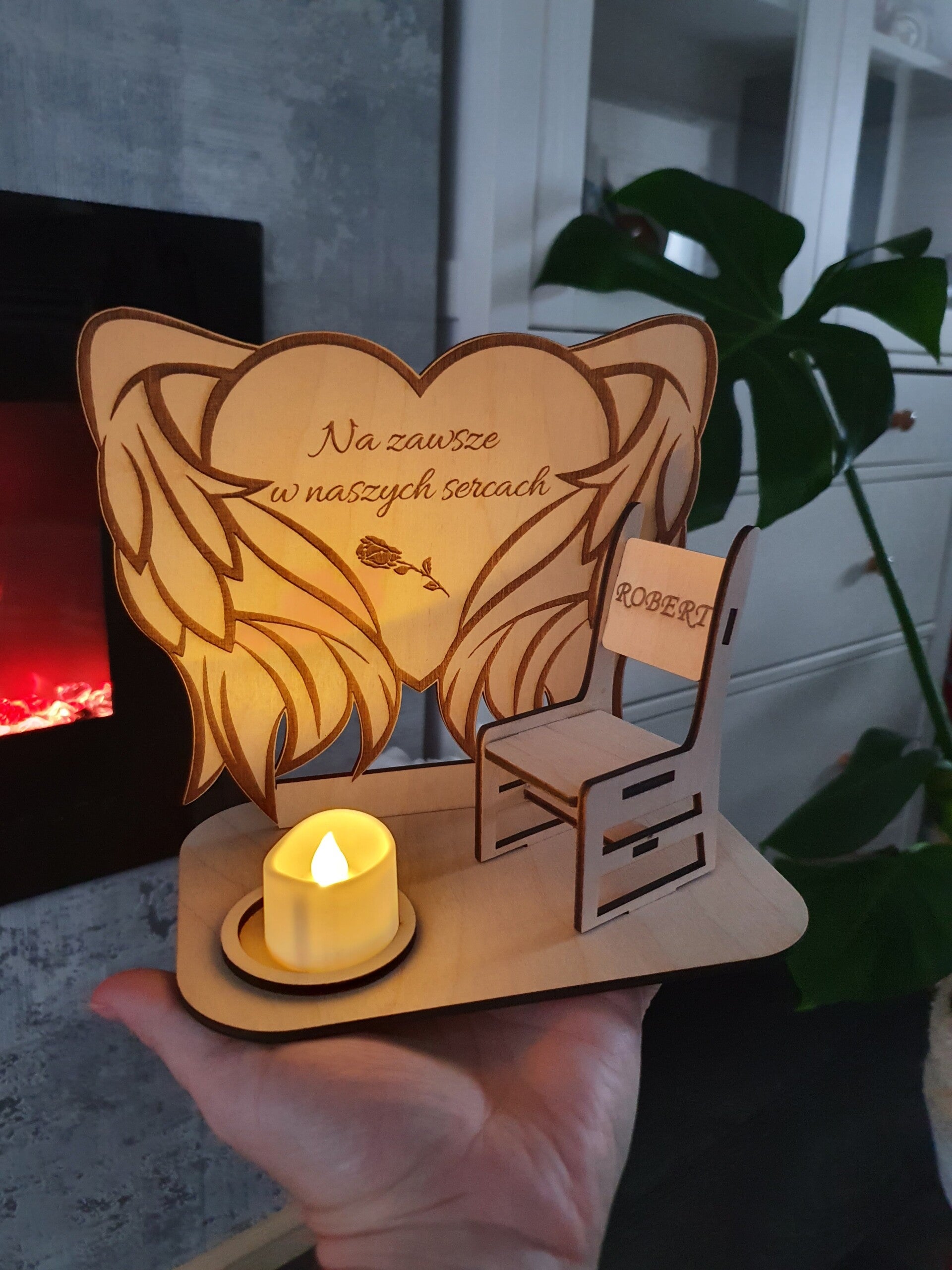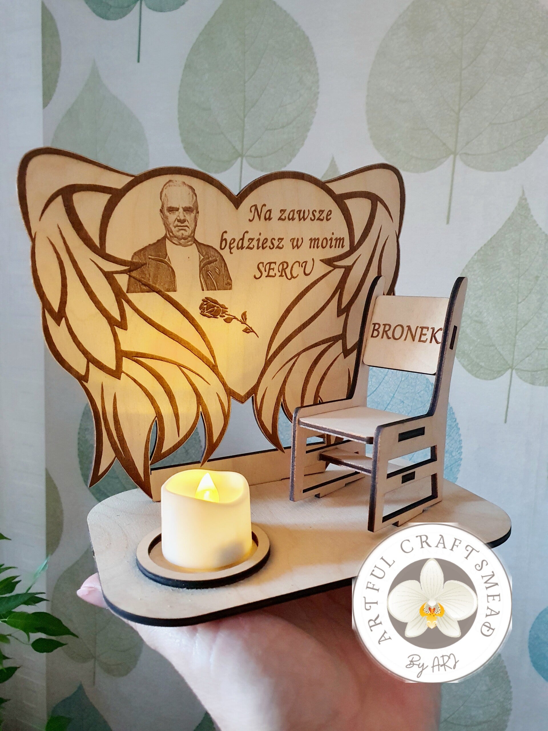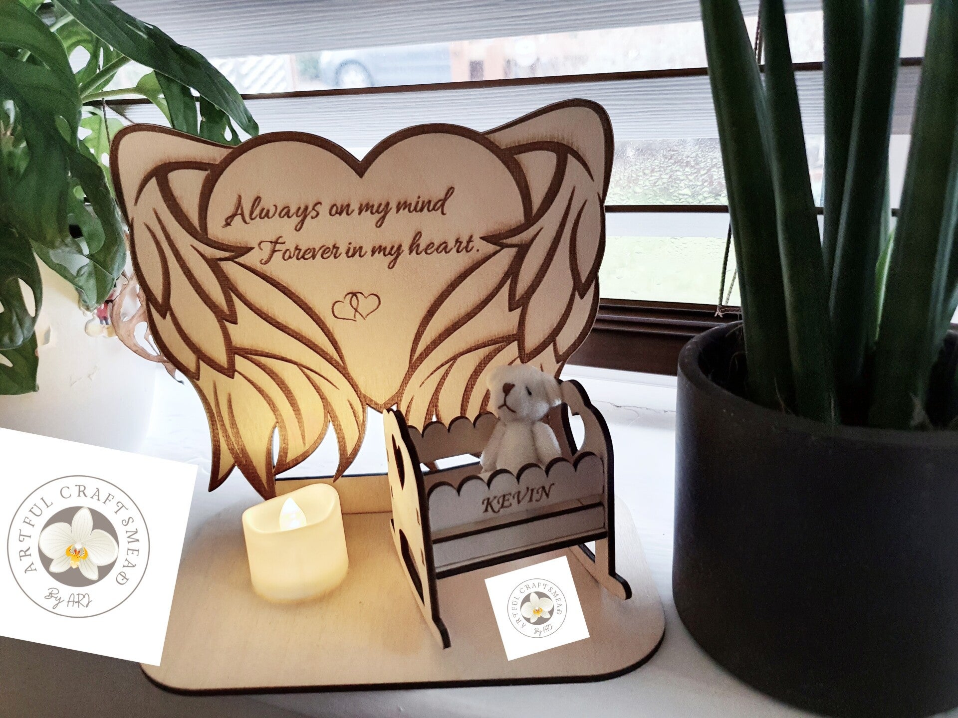 Personalised Wooden Heart Wings, Candle Memorial Display, Baby Cot, Chair, Keepsake, Remembrance, Family, Candlestick, Memorable Memory Gift