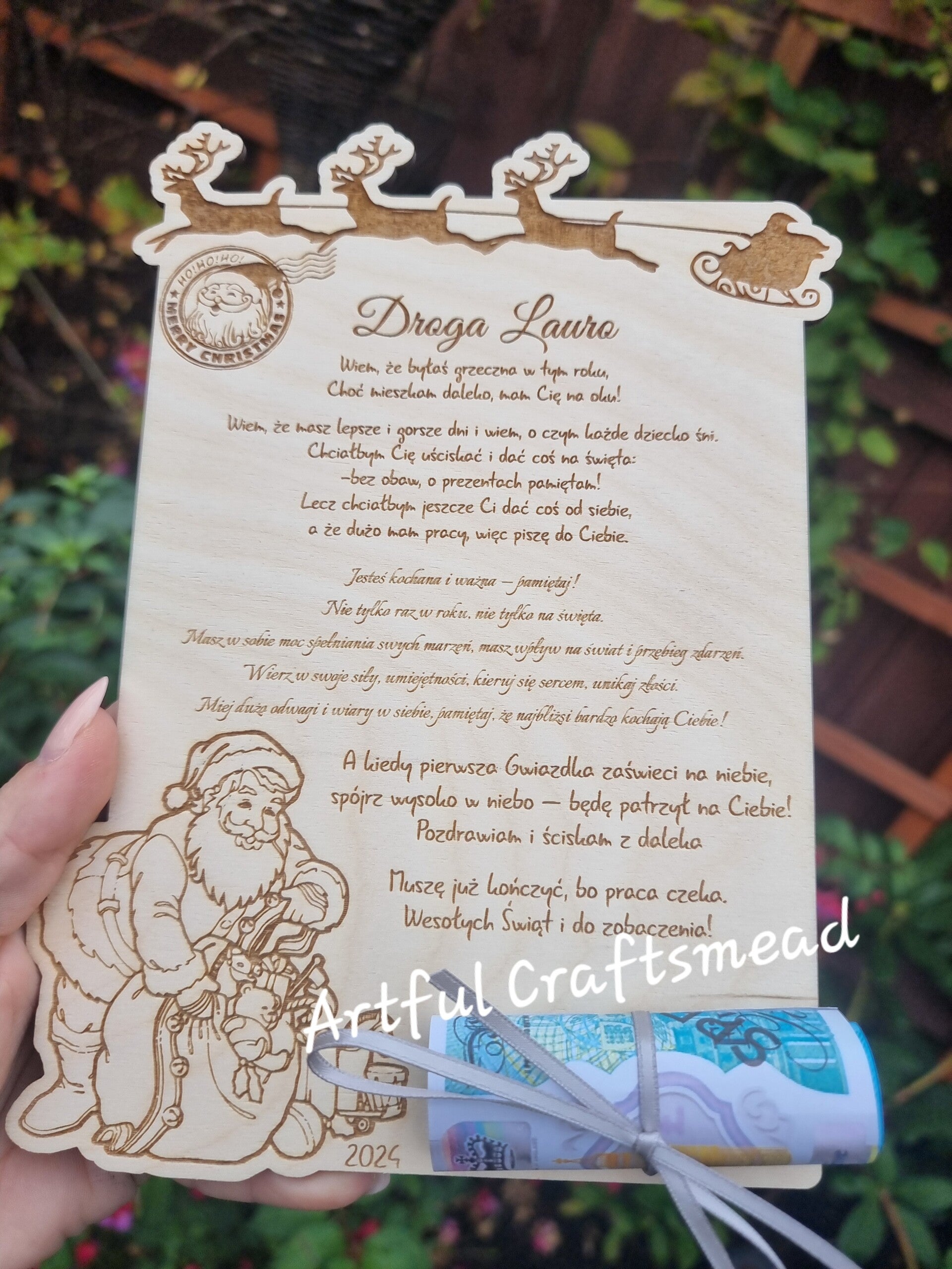 Personalized Wooden Letter from Santa Claus, Custom Letter From Santa With Money, With Name Child