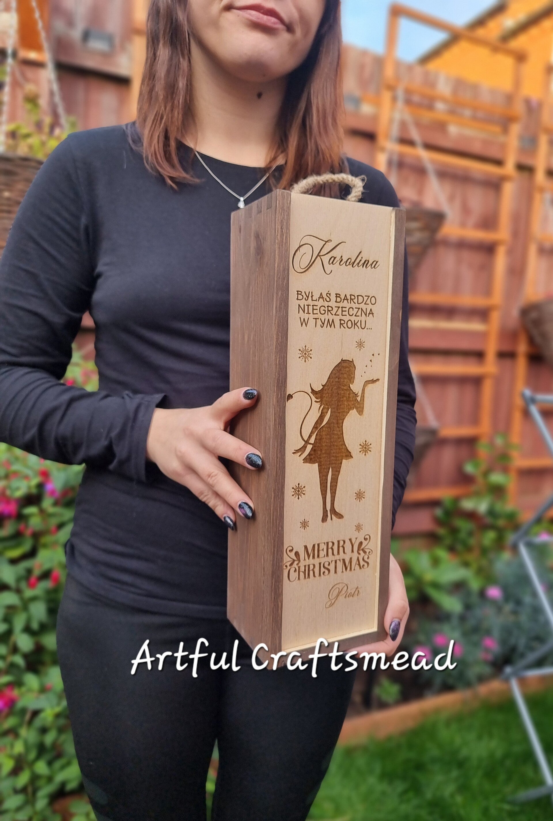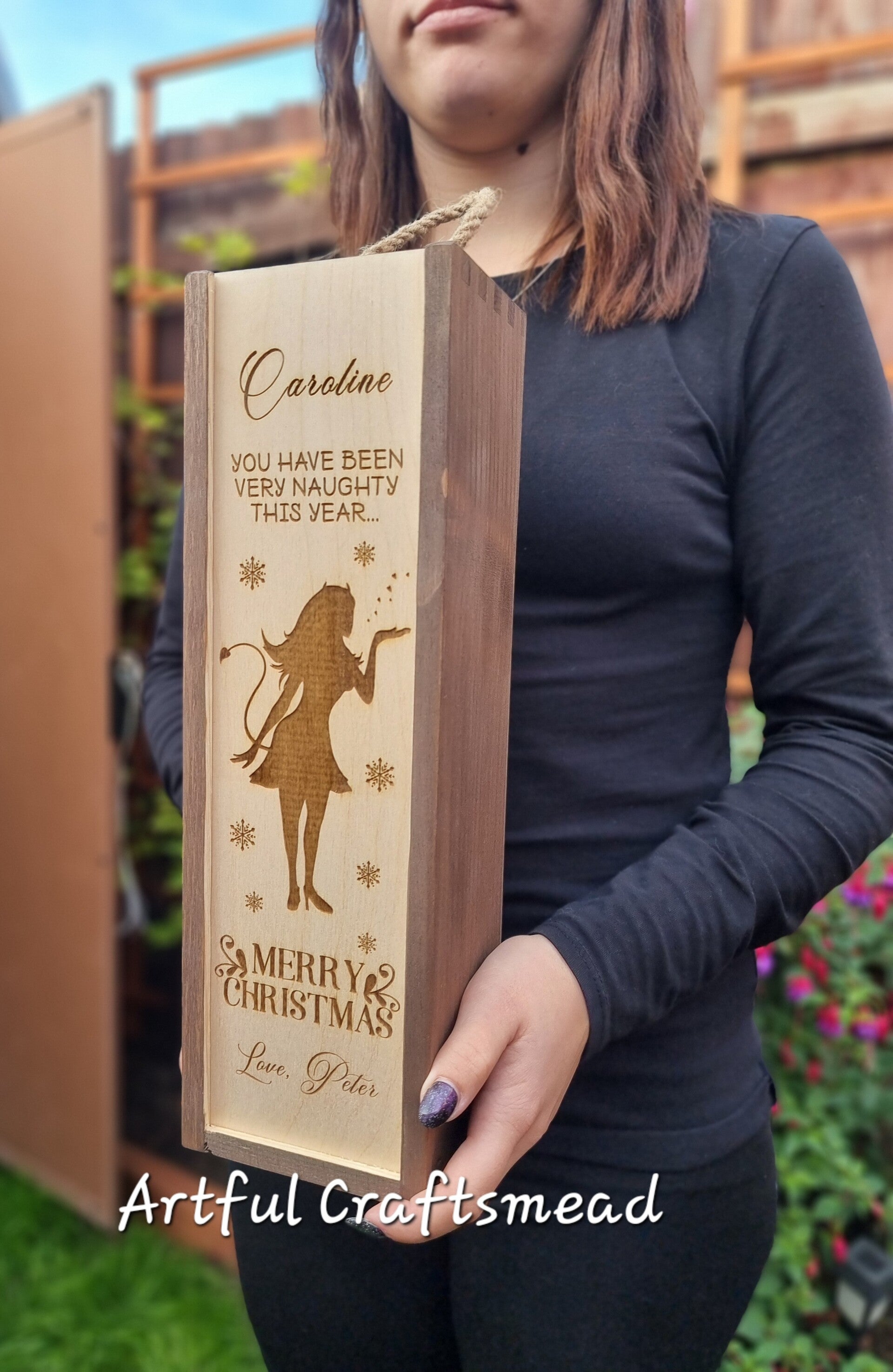 Celebrate this Christmas with a touch of elegance and a dash of mischief! Our **Personalized Wooden Wine Box** is the perfect gift for wine lovers, adding a unique and personal touch to your festive celebrations.