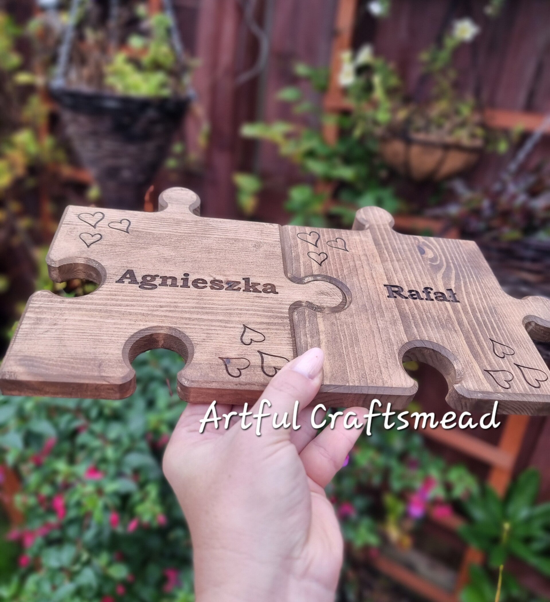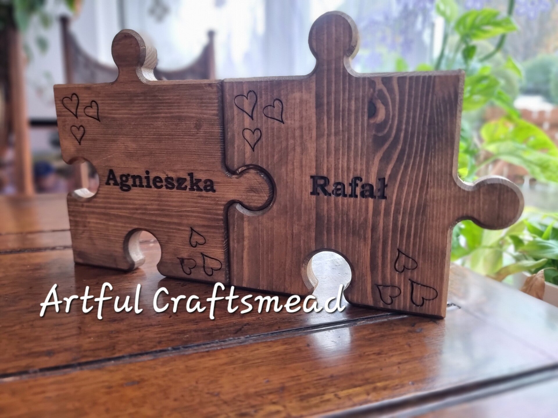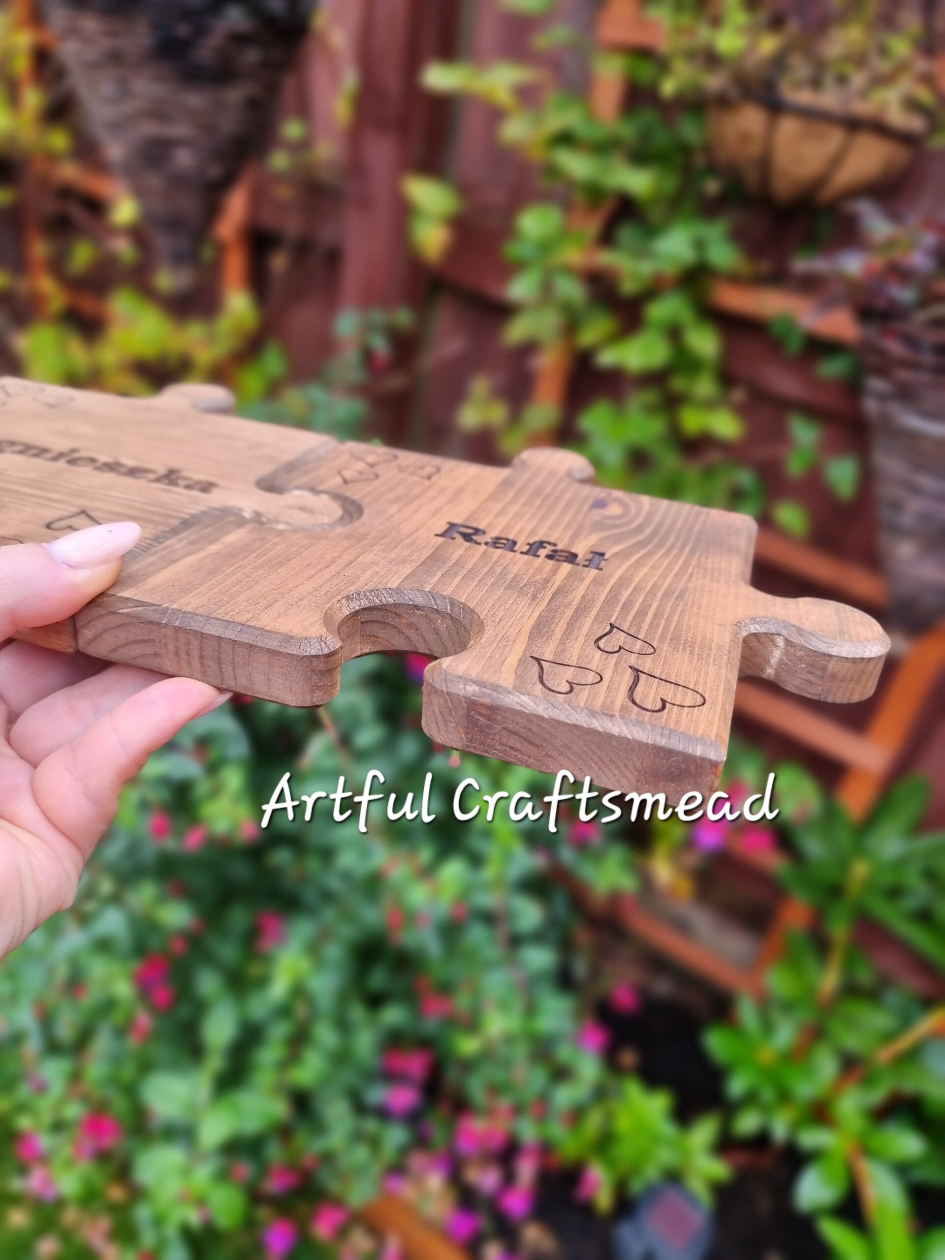 - **Personalized Engraving:** Each puzzle piece can be engraved with a name of your choice. Additionally, three discreet hearts are engraved in the corners, adding a touch of love and sentiment.