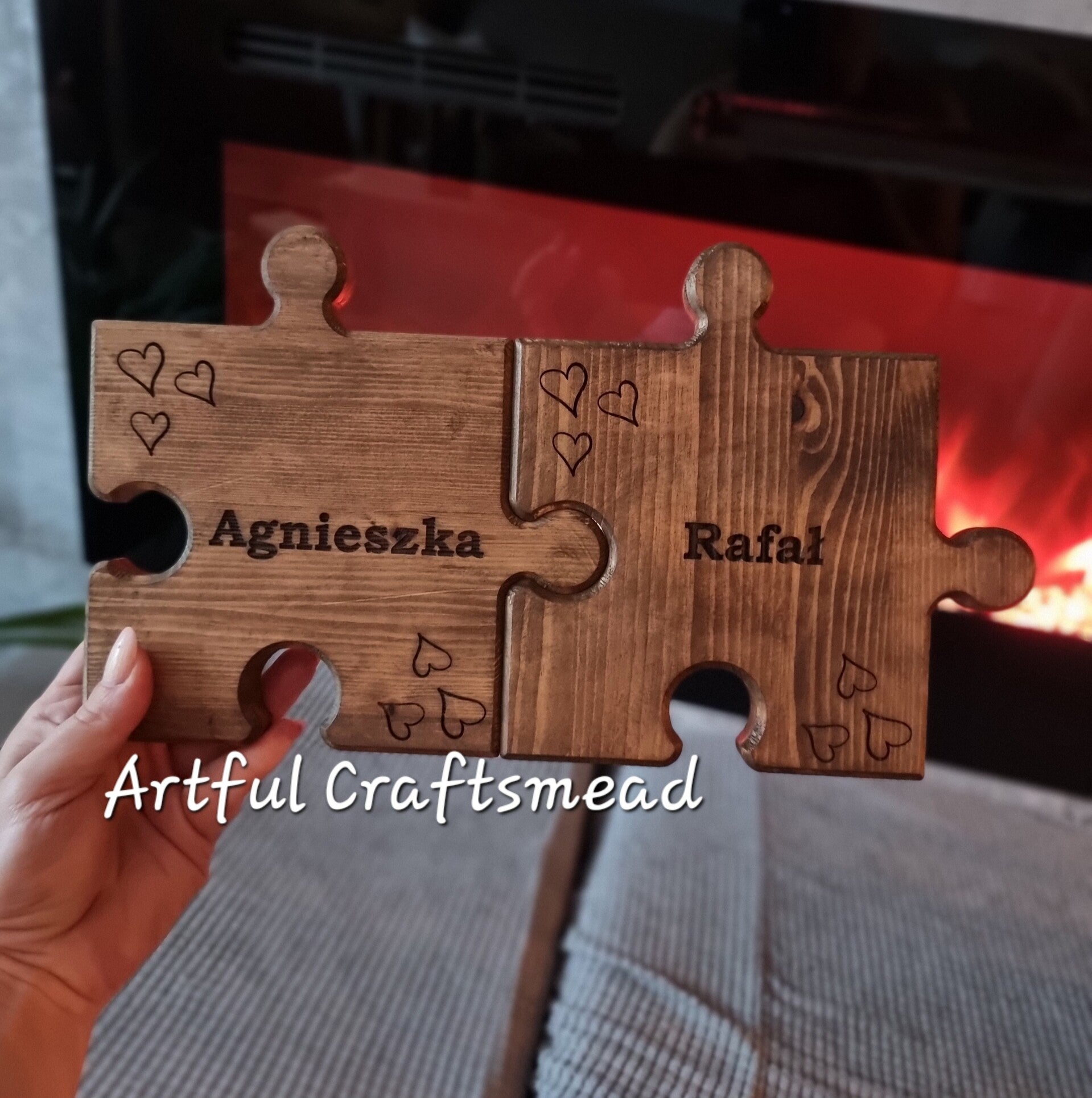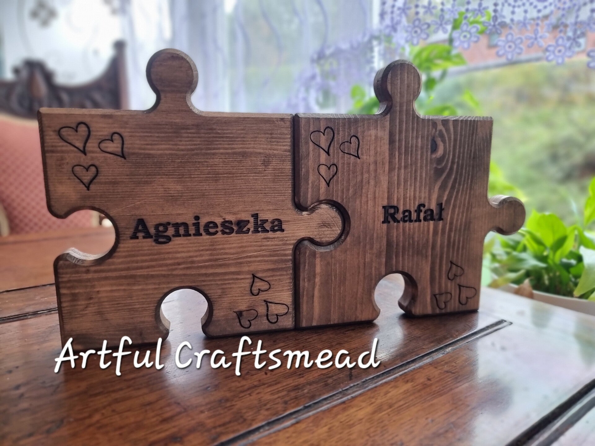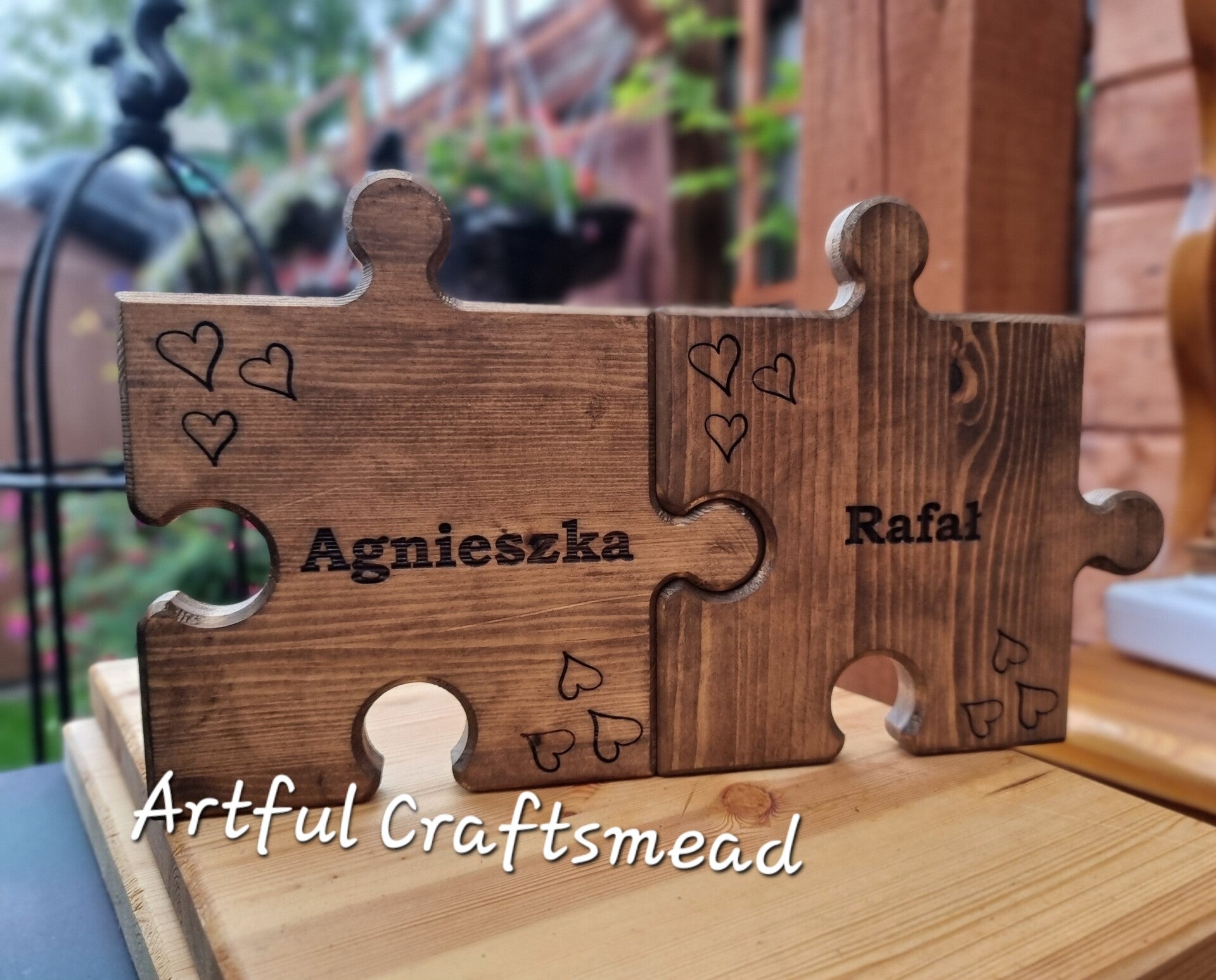 - **Personalized Engraving:** Each puzzle piece can be engraved with a name of your choice. Additionally, three discreet hearts are engraved in the corners, adding a touch of love and sentiment.