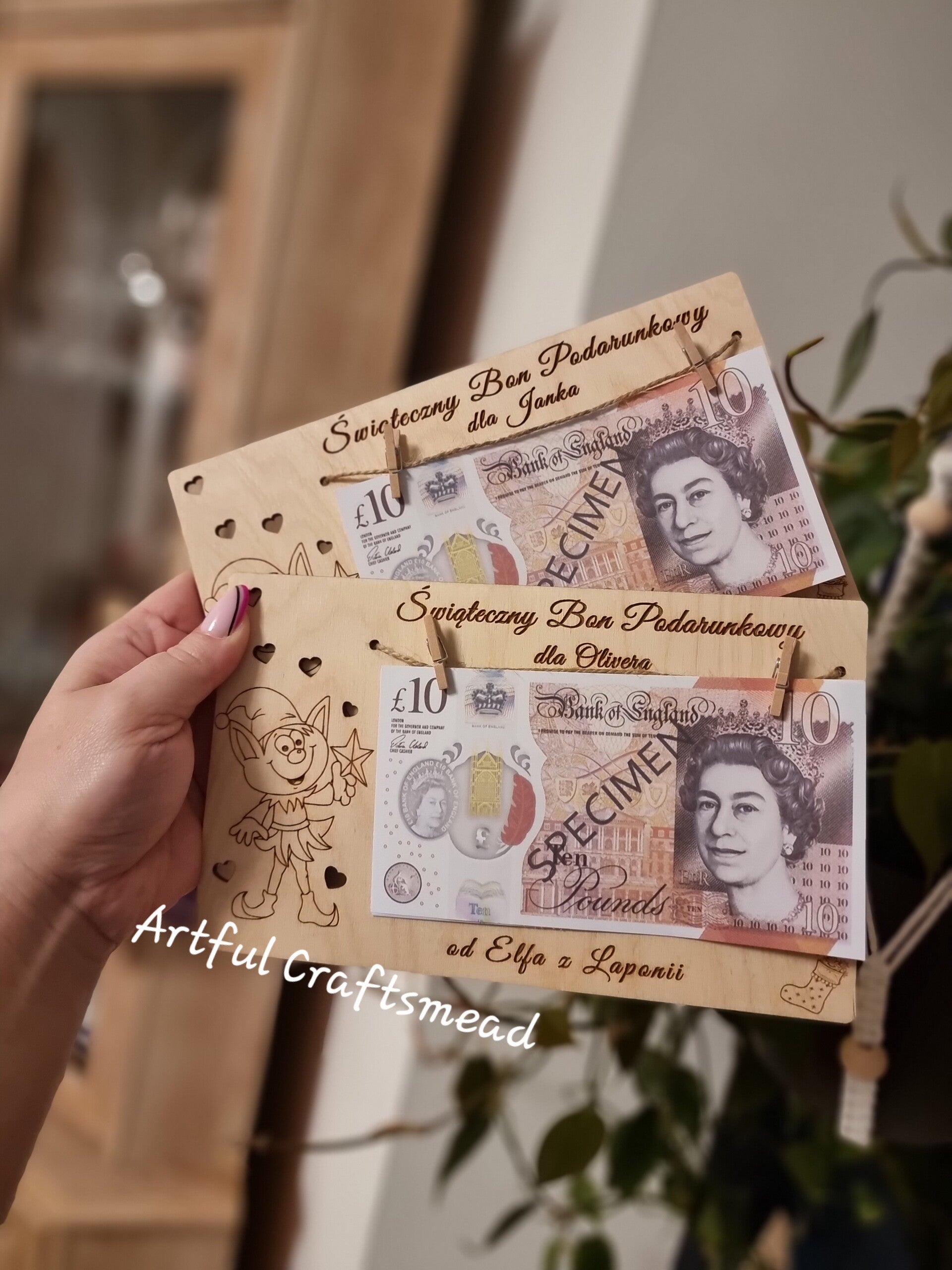Discover our enchanting **Christmas Money Gift Vouchers**, perfect for adding a touch of magic to your holiday season! 🌟 These unique vouchers are meticulously crafted from high-quality plywood, featuring a charming design and practical functionality.