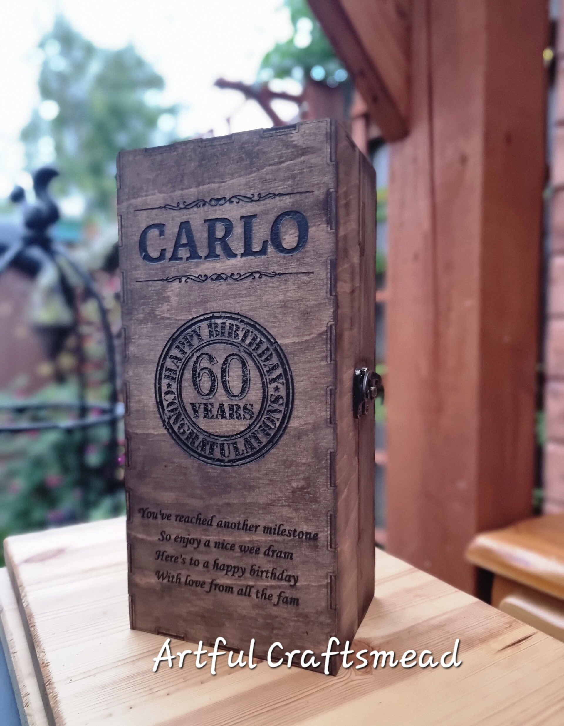 Looking for a unique and personalized birthday gift? Our handcrafted wooden whisky box, laser-engraved from high-quality plywood, is the perfect choice! 🌟