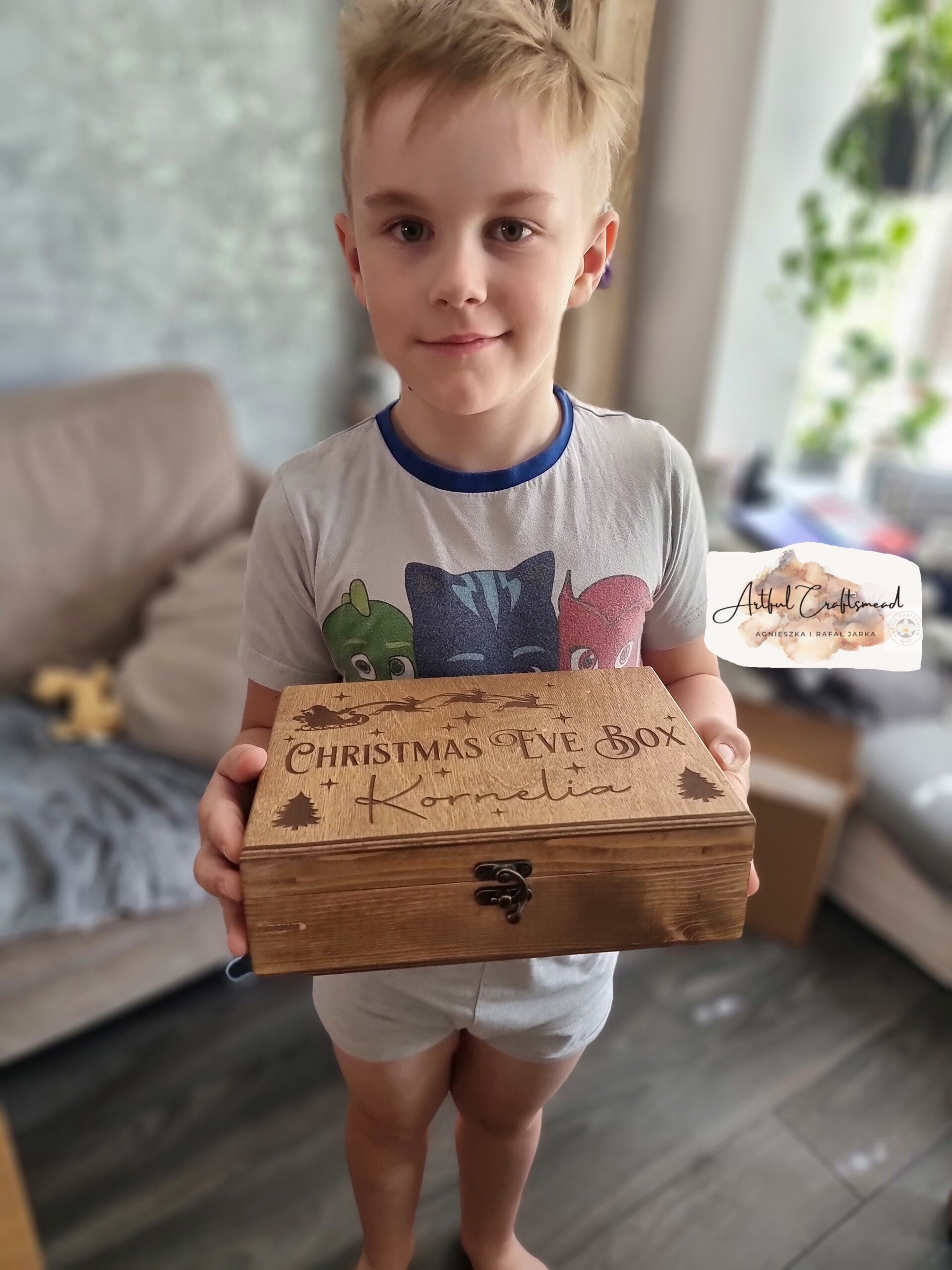 Engraved Xmas Eve Box - Bespoke Personalised Wooden Christmas Box Children, Adult, Ready To Fill With Gifts, Large Keepsake Box, St Clauses