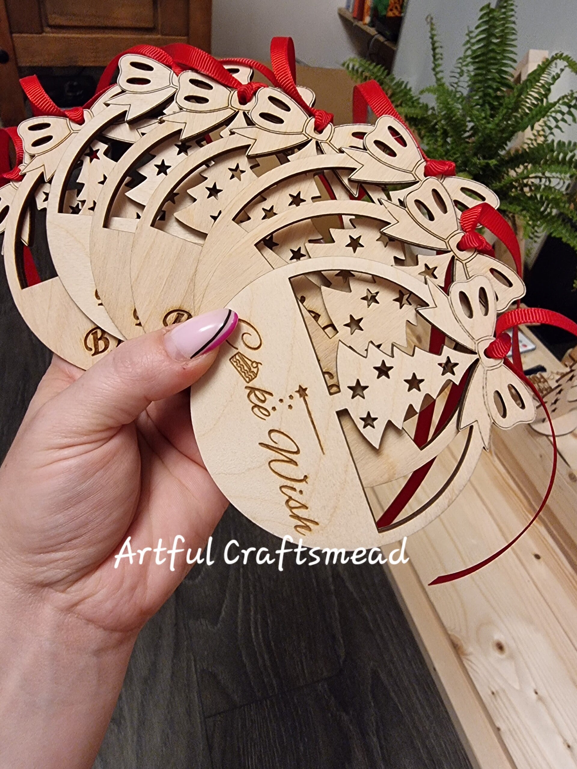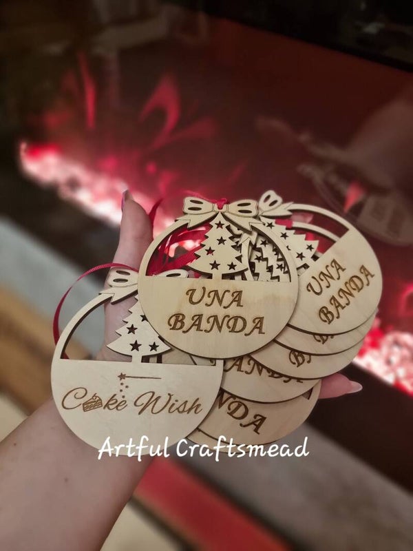 Personalized Christmas Ornament - Unique Plywood Hanging Decoration, Bauble With Name or Wishes, Christmas Tree Decoration