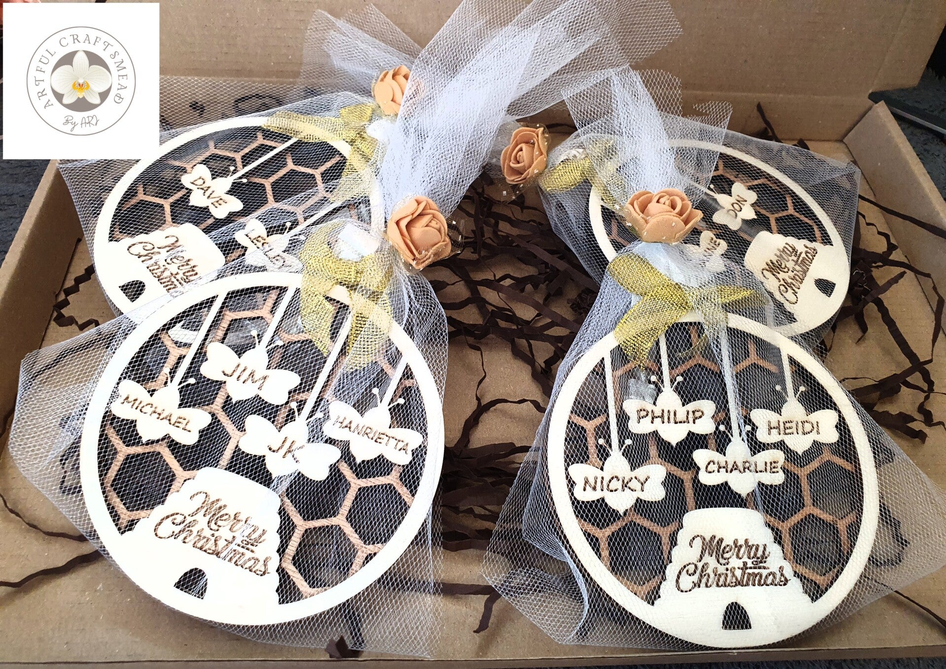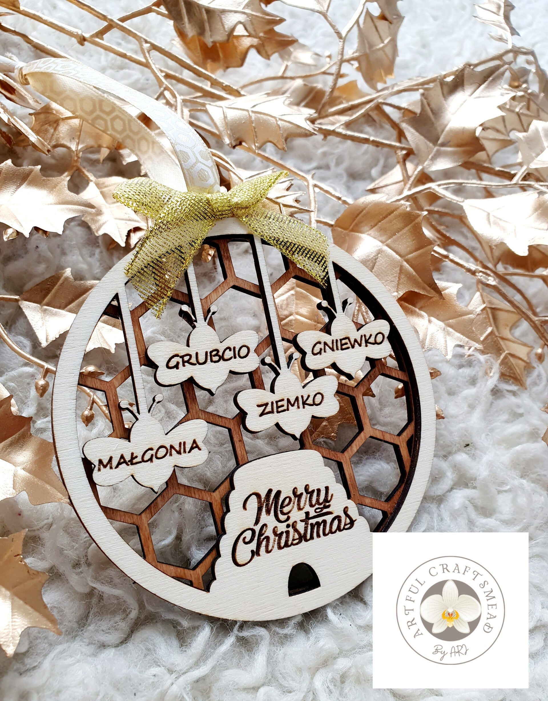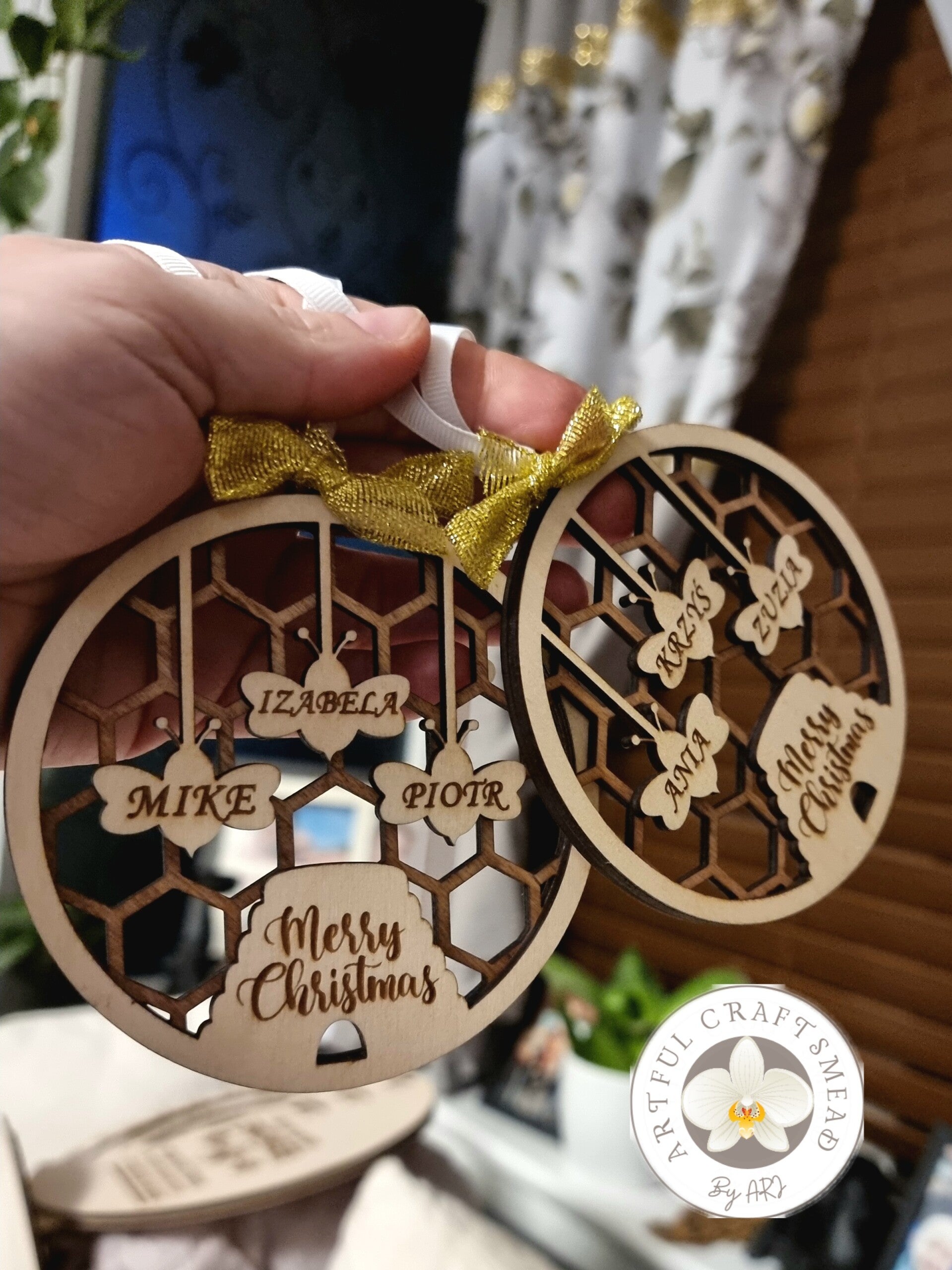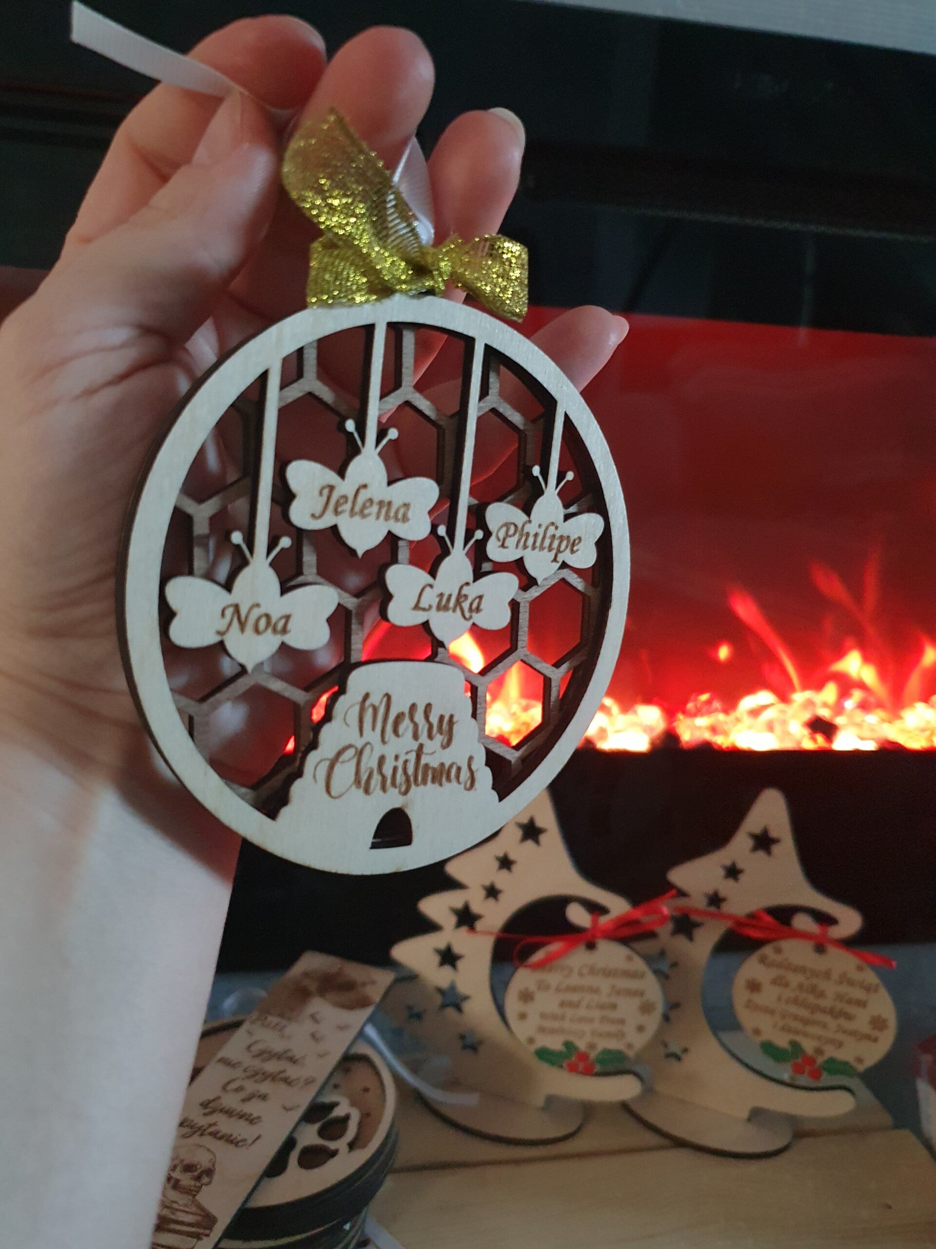 Personalised Wooden Christmas Ornament Baubles Tree, Ball Xmas Bees, Gift For Family, Home Decor, Custom Bauble, Family bauble,