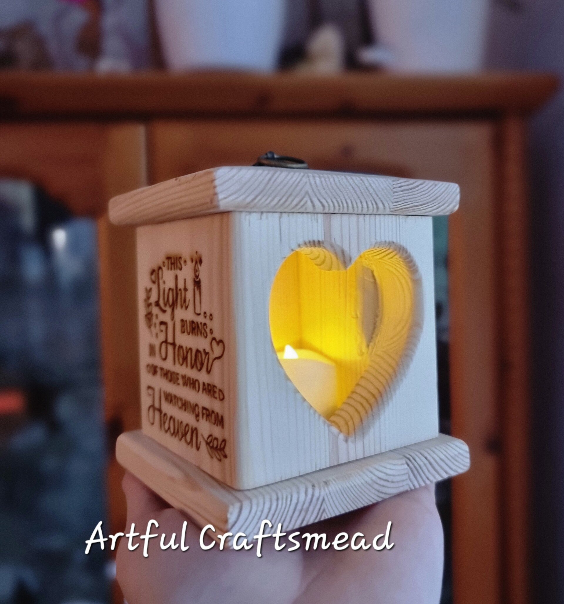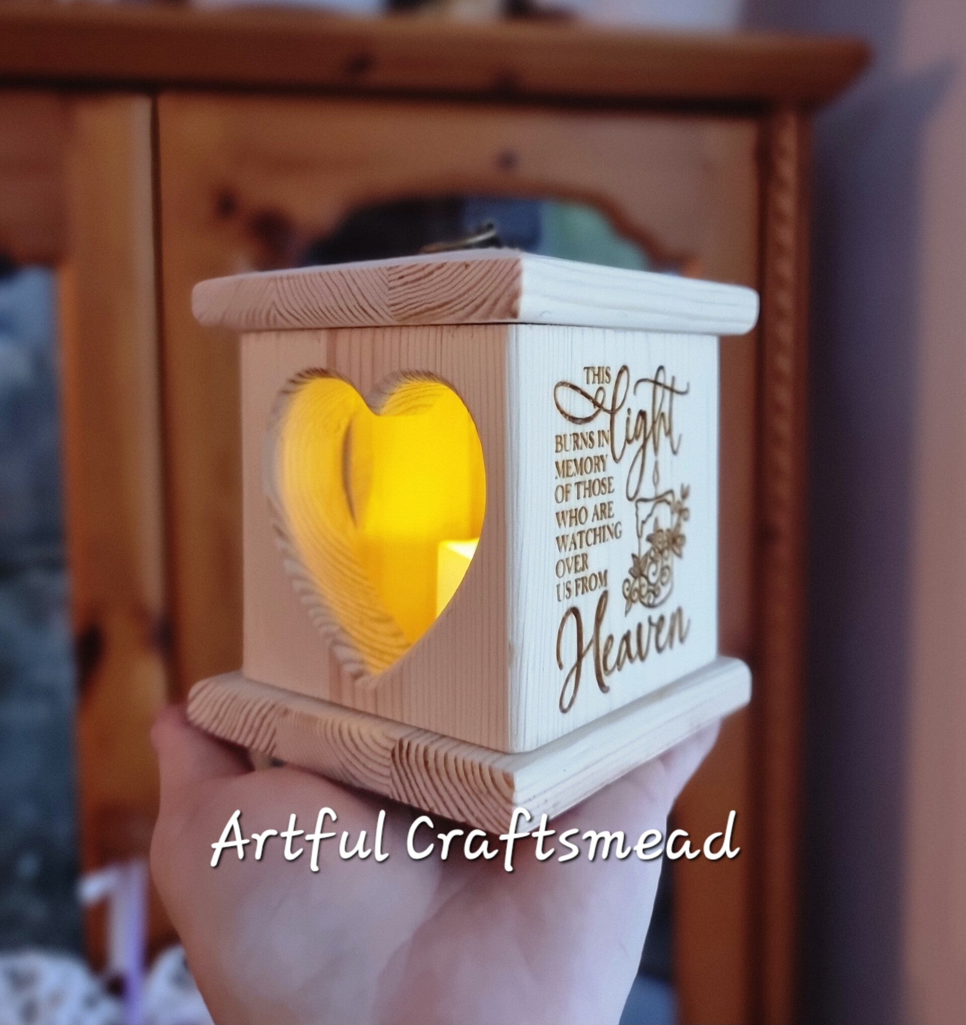 Introducing our exquisite handcrafted pine wood lantern, designed to honor the memory of a beloved person who has passed away. This lantern serves as a gentle reminder of their presence, bringing warmth and light into your home.