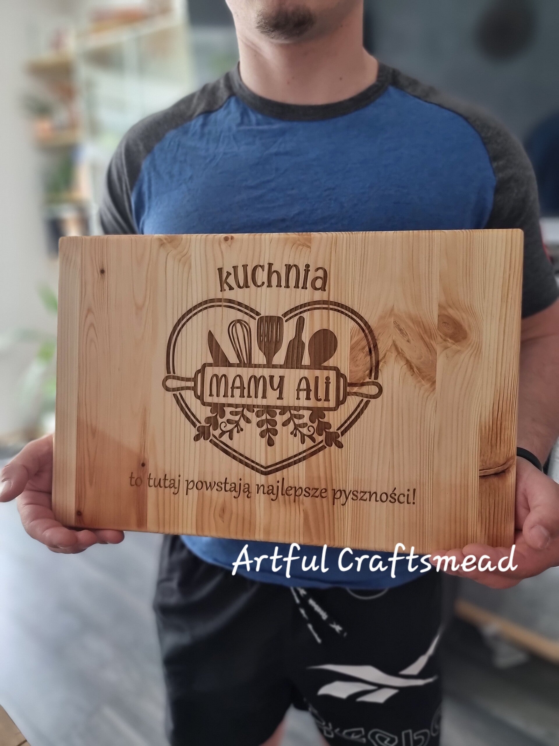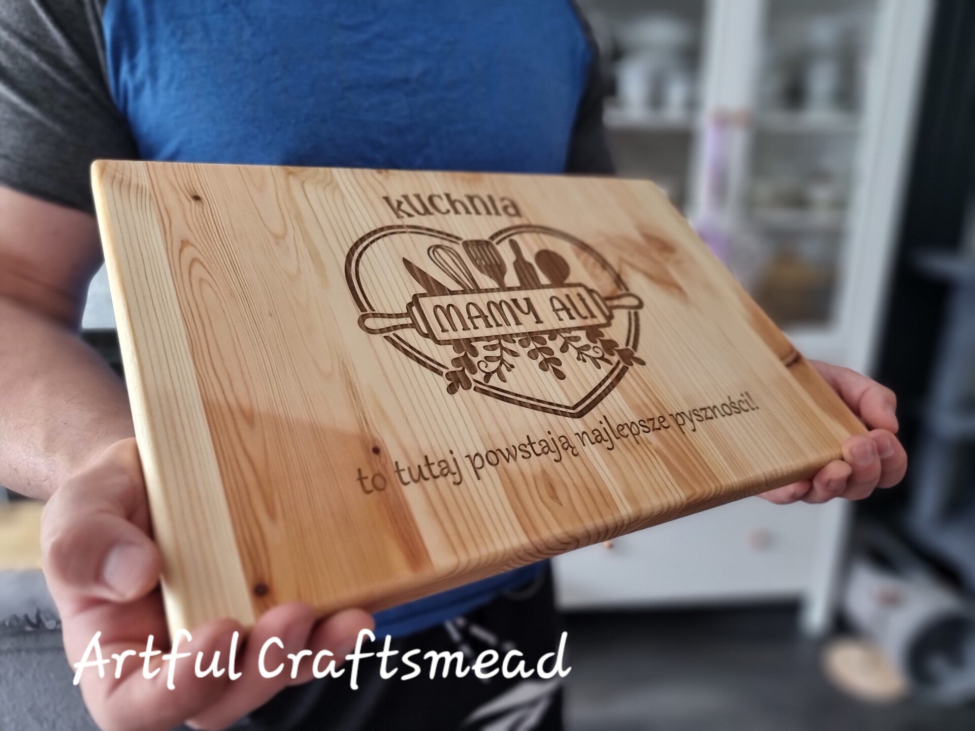 Niestandardowy grawer: spersonalizuj deskę, pisząc „Kuchnia mamy” lub „Kuchnia babci” wraz z ich imieniem. Możesz również dodać dedykację od darczyńcy.