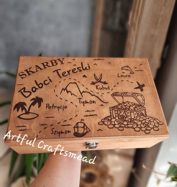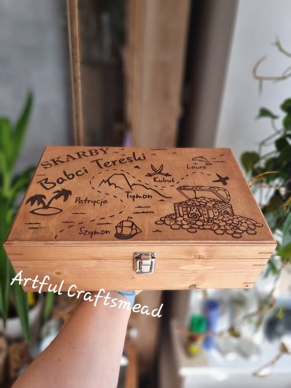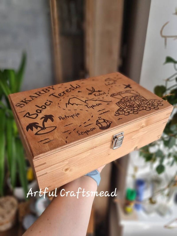Personalised Wooden Treasure Box For Grandma, Duży personalizowany box na skarby dla Babci czy Mamy