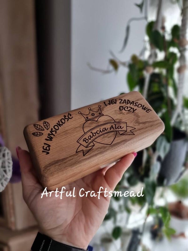 Personalised Handcrafted Oak Glasses Box for Grandma, Spersonalizowane dębowe pudełko na okulary dla Babci lub Mamy