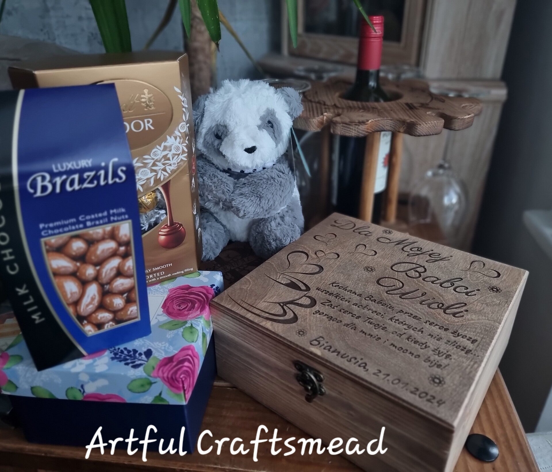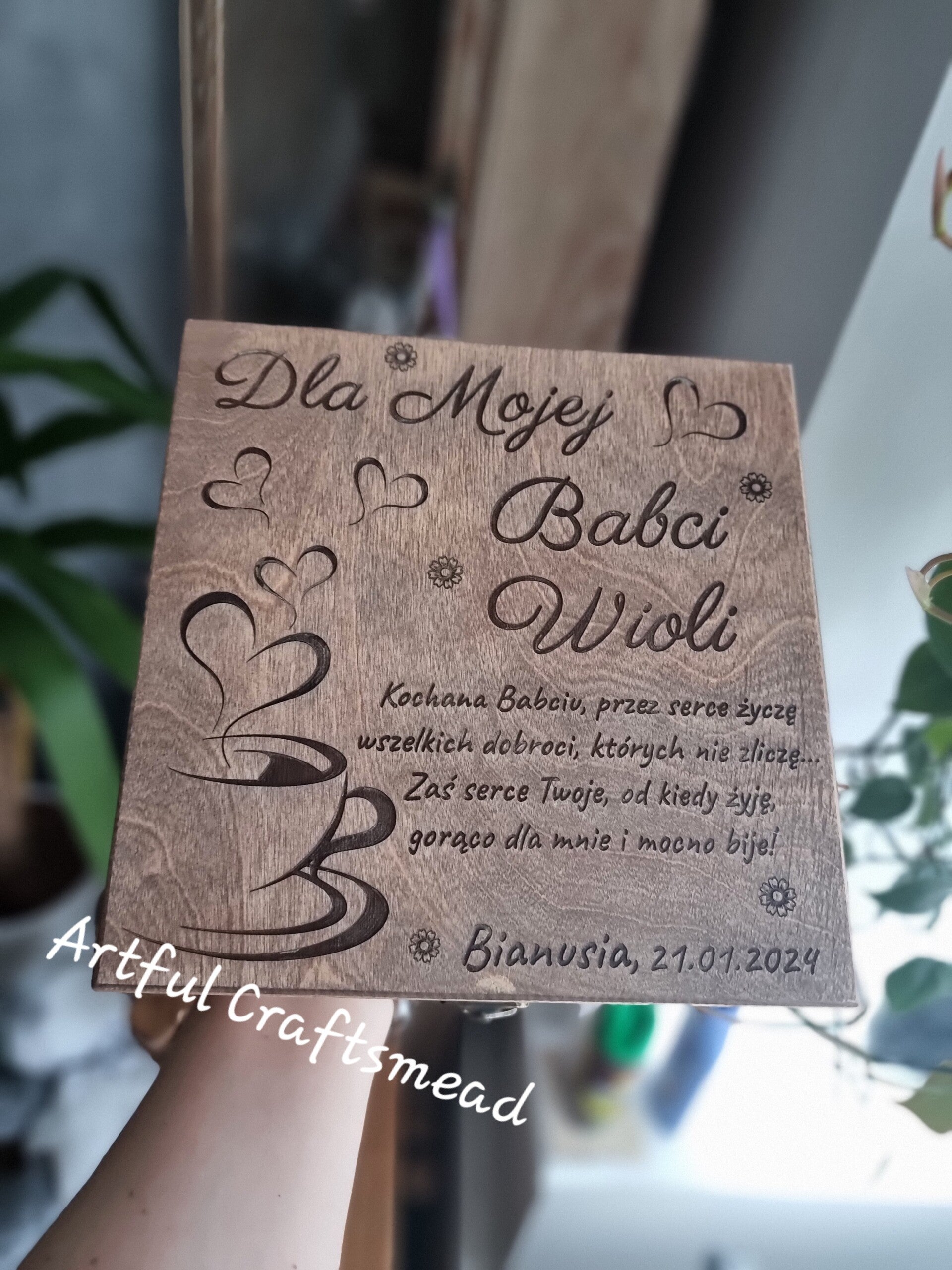 💌 Personalizacja 💌 Wieczko pudełka można spersonalizować napisem “Dla mojej Babci [Imię]”, co dodaje mu wyjątkowego charakteru. Możesz również spersonalizować pudełko dla Mamy. Dodatkowo, istnieje możliwość dodania dedykacji od kogo i daty, jeśli chcesz.