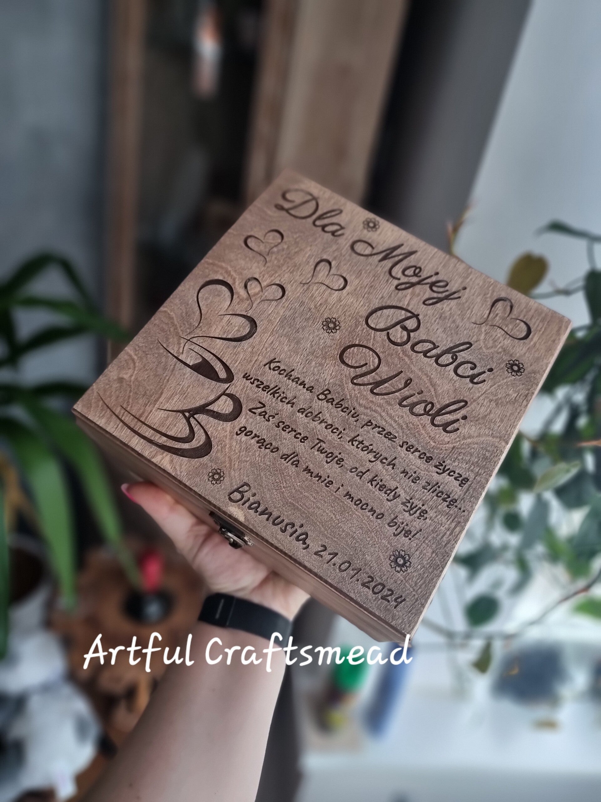 ✨ Ręcznie Wykonane z Miłością i Precyzją ✨ To wspaniałe pudełko jest starannie wykonane z litego drewna sosnowego, co gwarantuje trwałość i ponadczasowy wygląd. Możliwość personalizacji sprawia, że jest to unikalny i ceniony upominek.