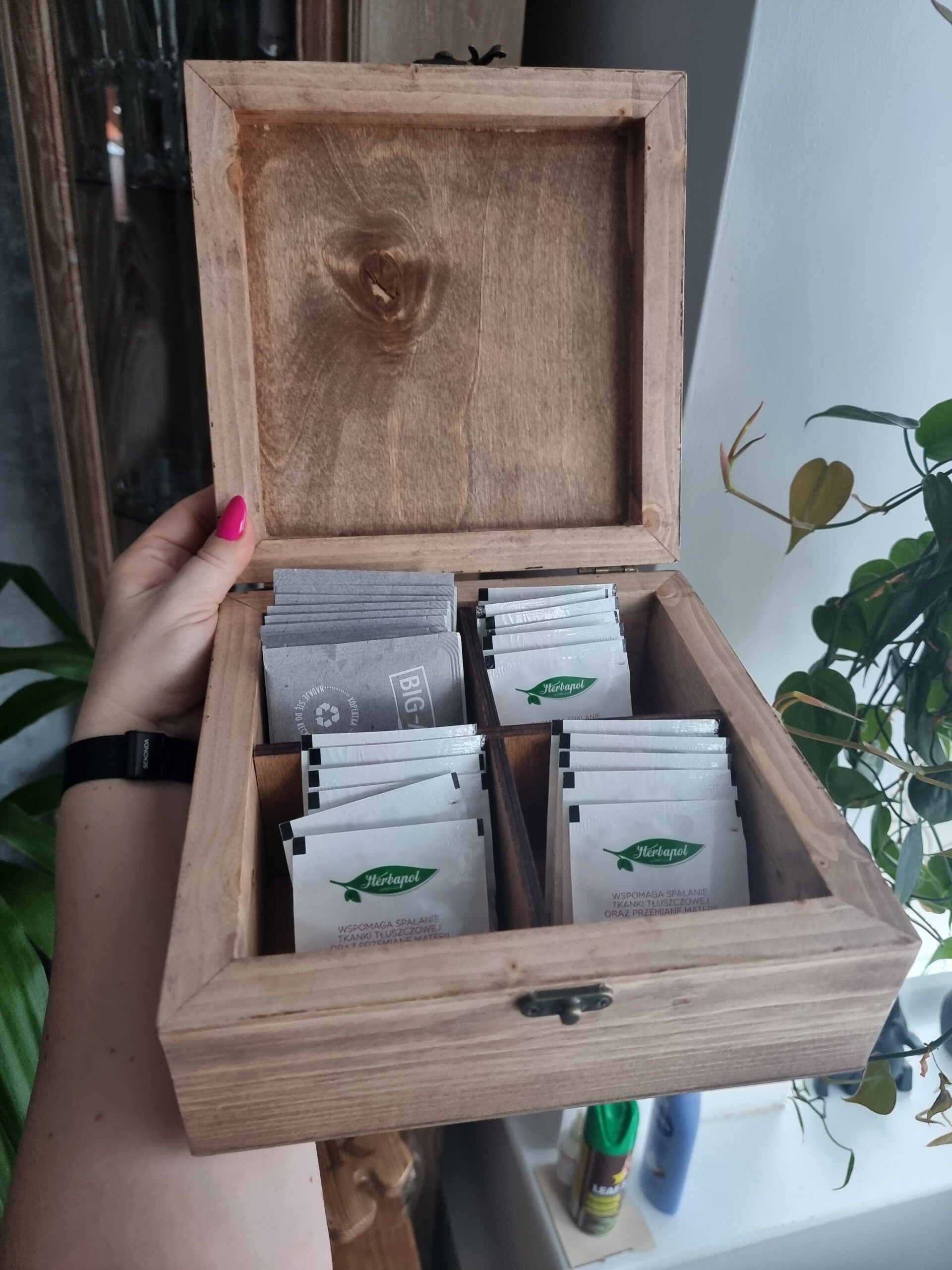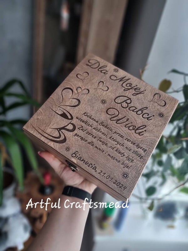 Beautiful Solid Pine Tea Box, Personalizowane Drewniane Pudełko na Herbaty dla Babci czy Mamy