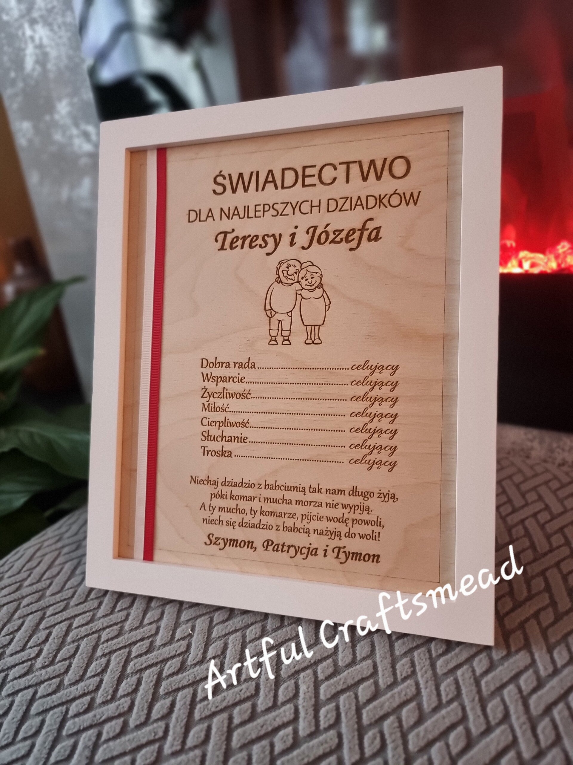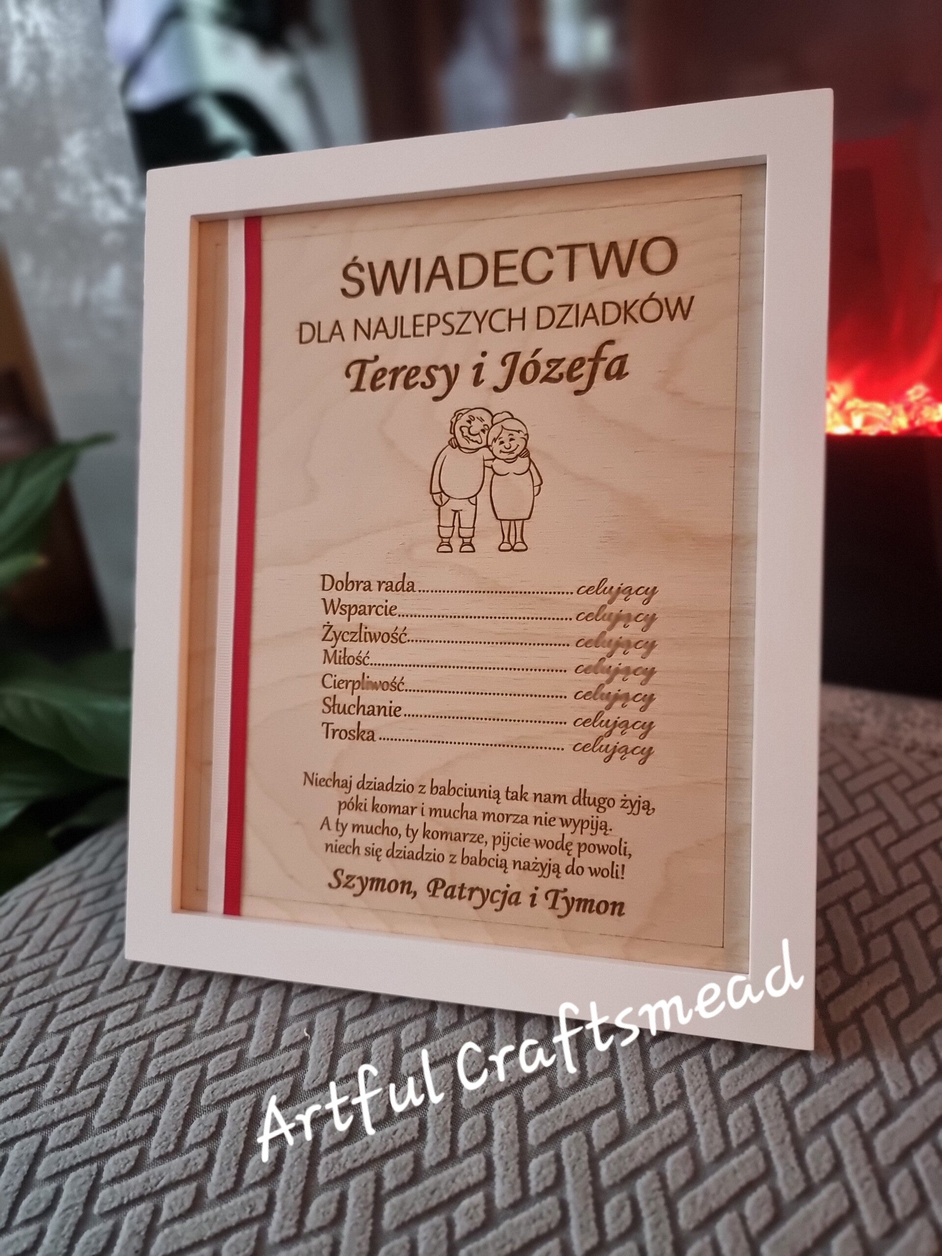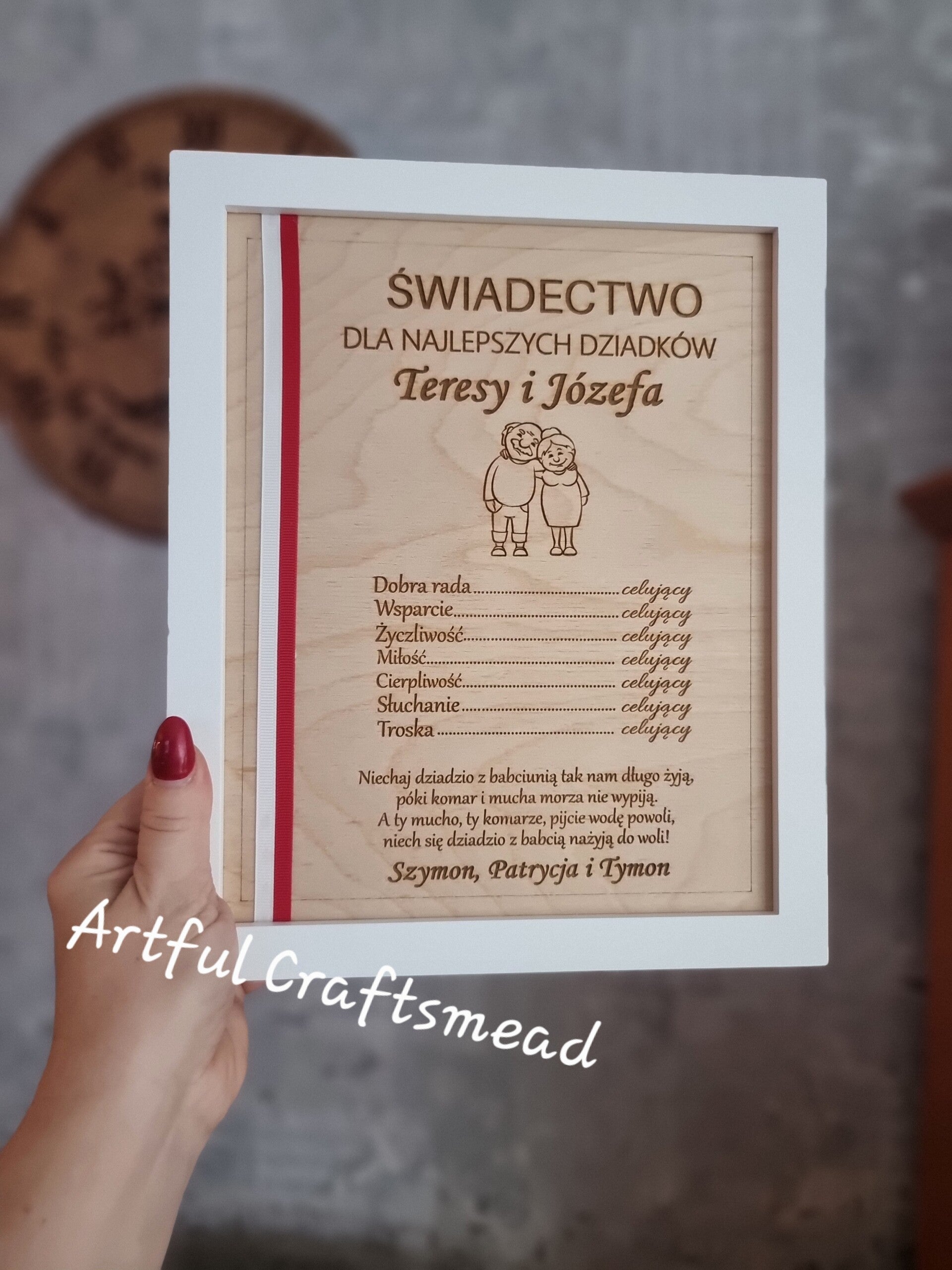 Uhonoruj swoich dziadków naszym wykwintnym certyfikatem w drewnianej ramce! 🌟