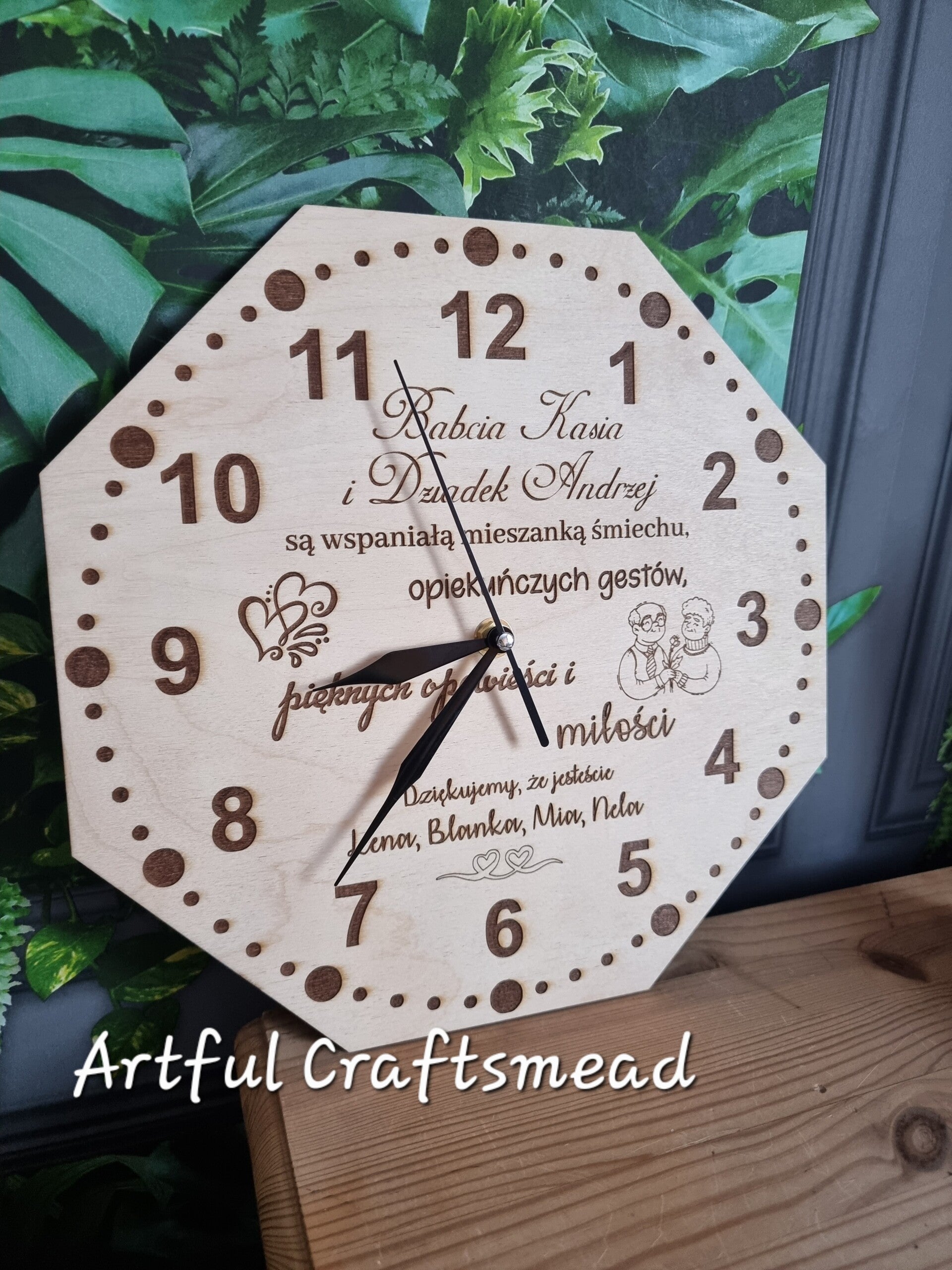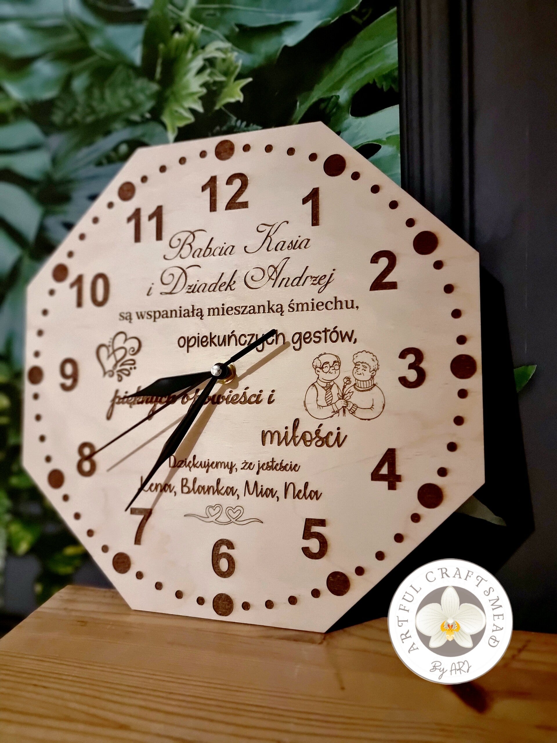 Szukasz idealnego prezentu dla Babci i Dziadka? Nasz personalizowany zegar z plywood to strzał w dziesiątkę! 🎯
