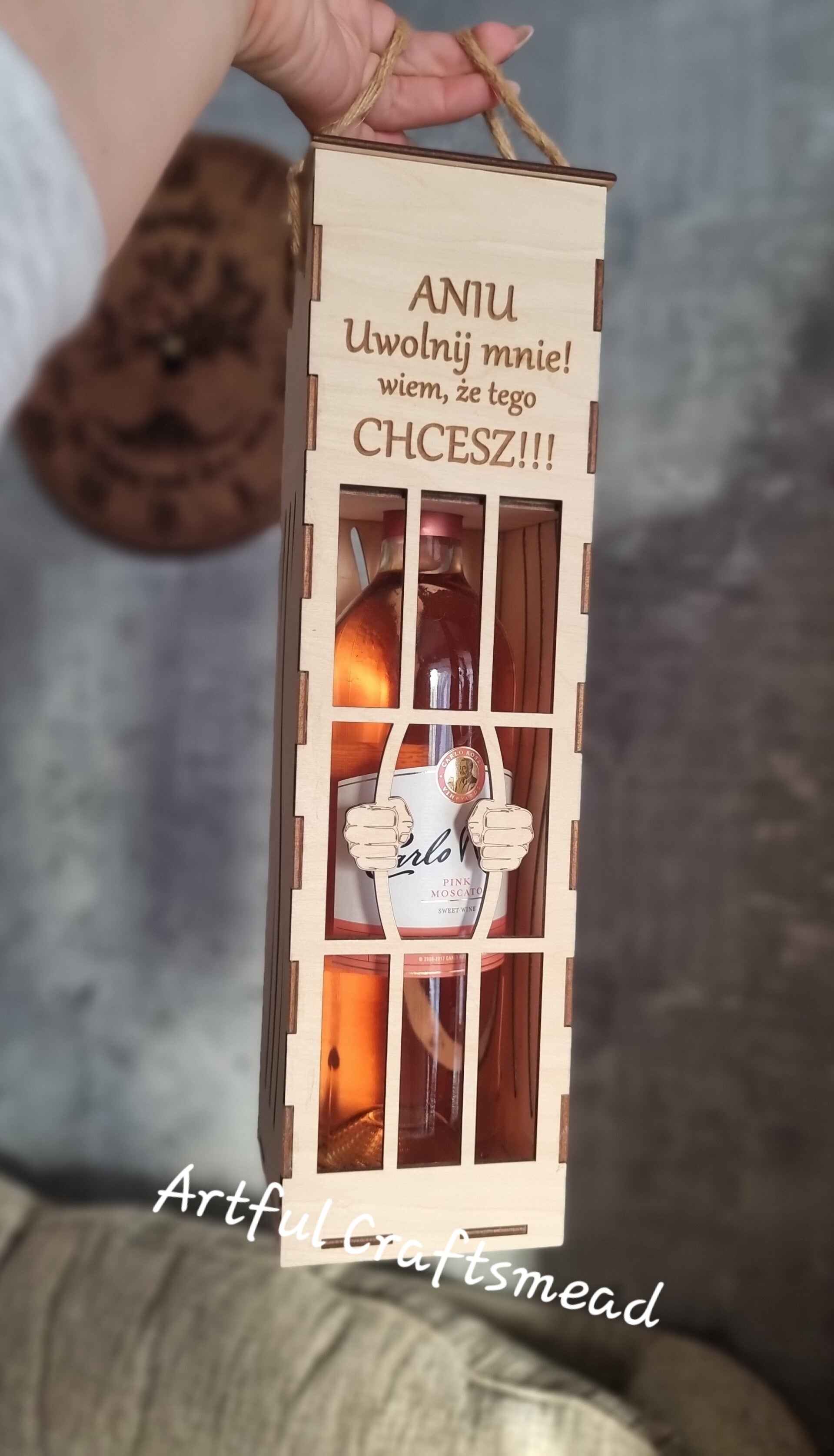 Personalised Wooden Wine Box, Free the Wine! Handcrafted Plywood Wine Box, Gift For all occasions with name, alco box, Spersonalizowane drewniane pudełko na wino, Uwolnij wino! Ręcznie robione pudełko na wino ze sklejki, prezent na każdą okazję z imieniem