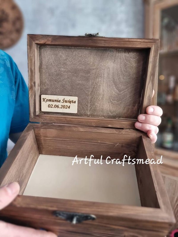 Hello, thoughtful gift givers! 😊 Are you looking for a unique and meaningful gift for a special occasion like First Communion, baptism, or any event associated with angels? Look no further – our handcrafted pine wood box is here to charm and impress! 🌿💕