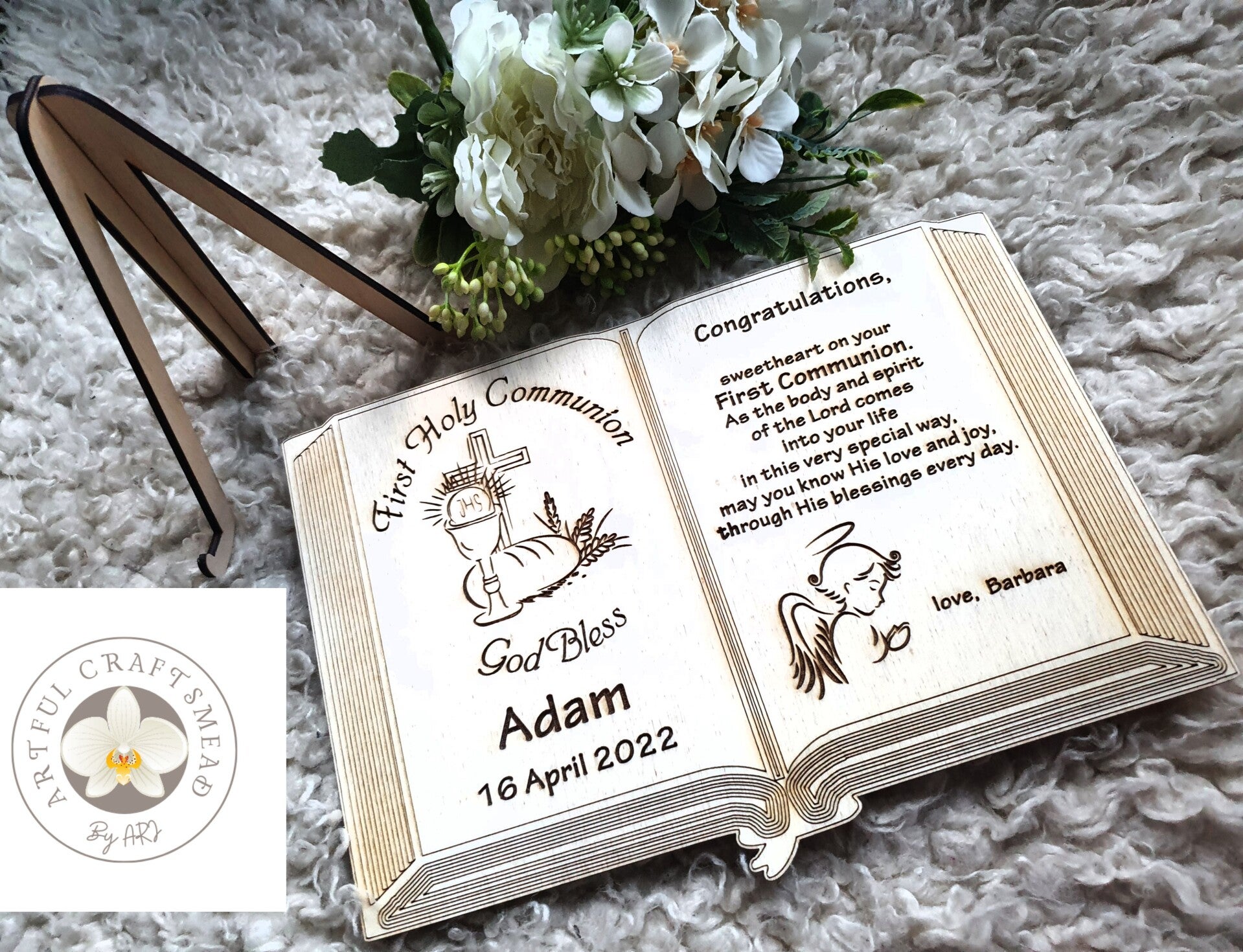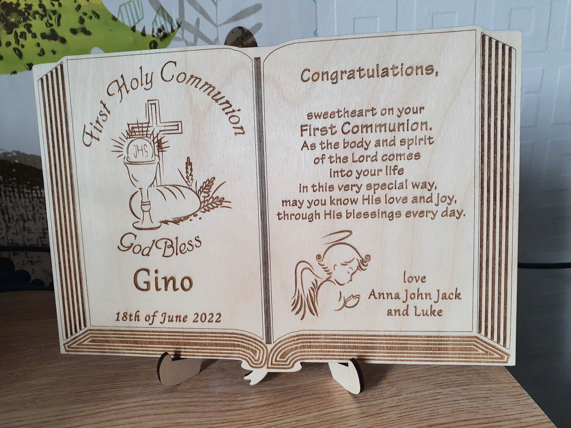Order your personalized First Holy Communion Keepsake Plaque today and create a lasting memory for this special occasion. Click "Add to Cart" now and celebrate the joy of First Holy Communion! 🌟✨😊