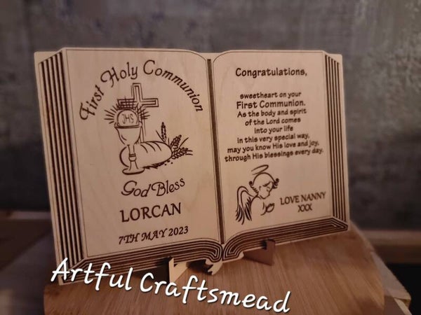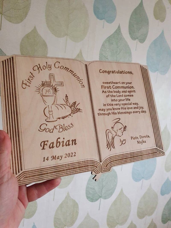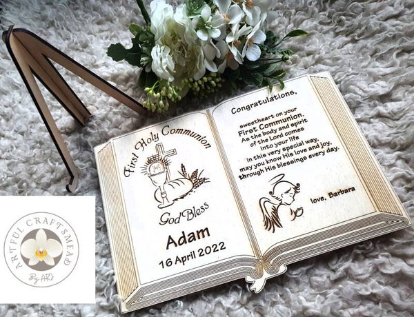 First Holy Communion Keepsake Plaque Keepsake, Karta otwarta Biblia, Pamiątka Pierwszej Komunii Świętej