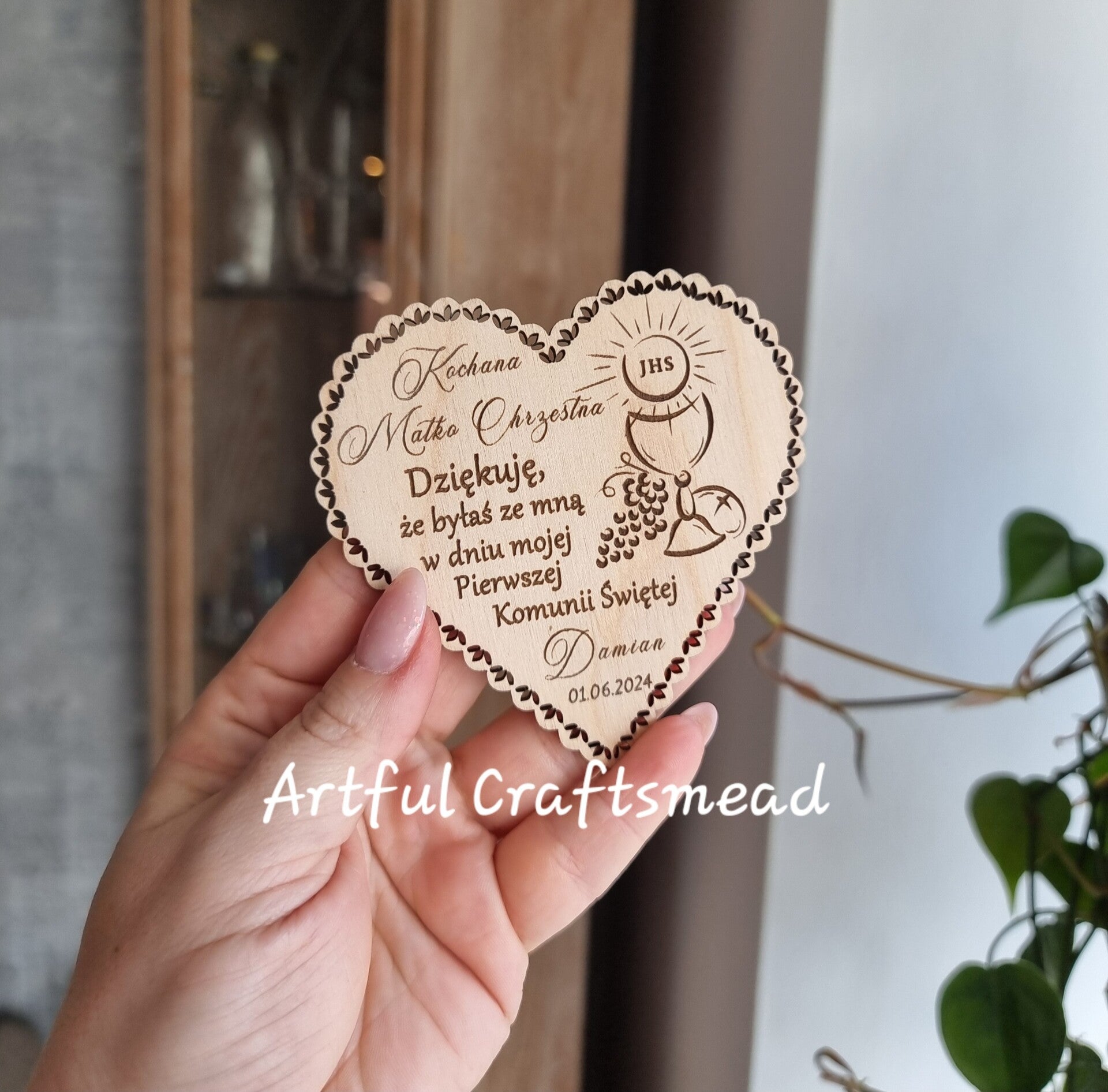 🌟 **Drewniane magnesy w kształcie serca z okazji Pierwszej Komunii Świętej** 🌟