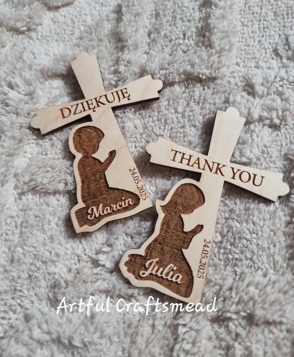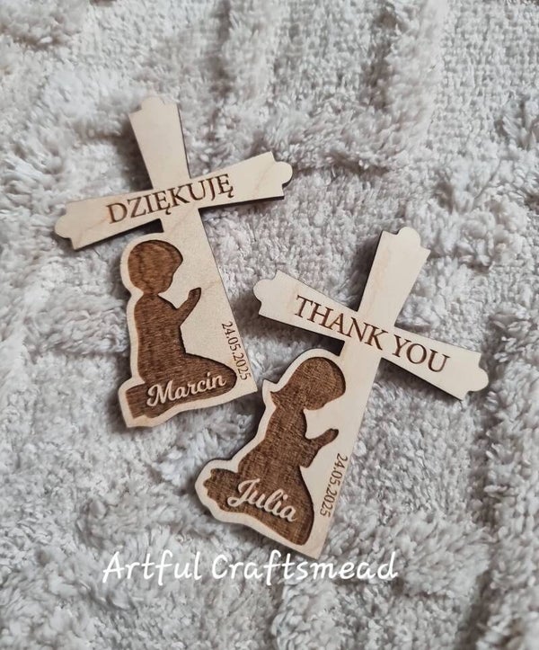 Witajcie, wspaniali klienci! 😊 Czy szukacie wyjątkowego i znaczącego sposobu, aby wyrazić swoją wdzięczność? Nasze **Magnesy z podziękowaniami** są idealne na każdą specjalną okazję! Te pięknie wykonane magnesy mają kształt krzyża, z modlącą się dziewczynką lub chłopcem klęczącym obok.
