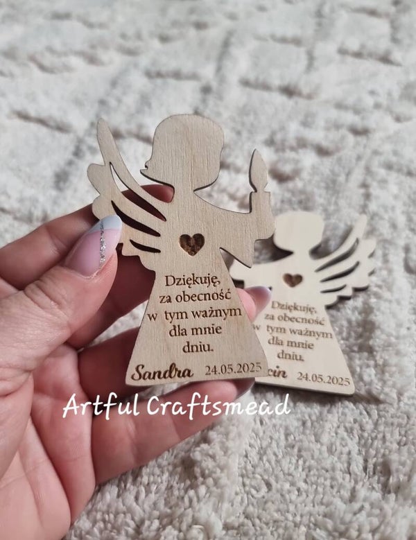 Witajcie, drodzy klienci! 😊 Czy szukacie wyjątkowego i znaczącego sposobu, aby wyrazić swoją wdzięczność? Nasze **Magnesy z podziękowaniami** są idealne na każdą specjalną okazję! Te pięknie wykonane magnesy zostały zaprojektowane w kształcie anielskich dzieci, chłopca lub dziewczynki, trzymających świecę. Każdy magnes ma krótką personalizację z imieniem dziecka i datą, co czyni go wyjątkową pamiątką. 🕊️💖