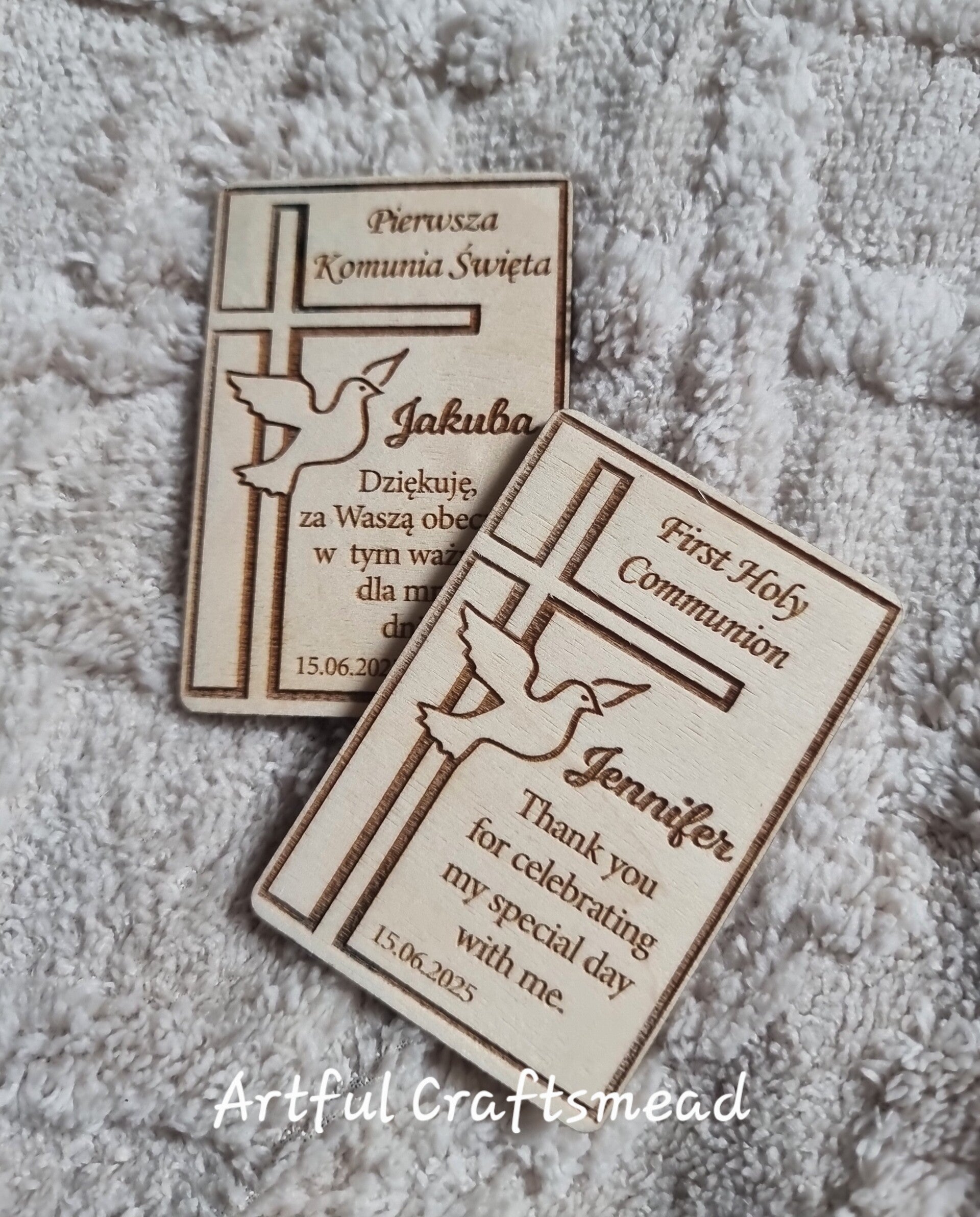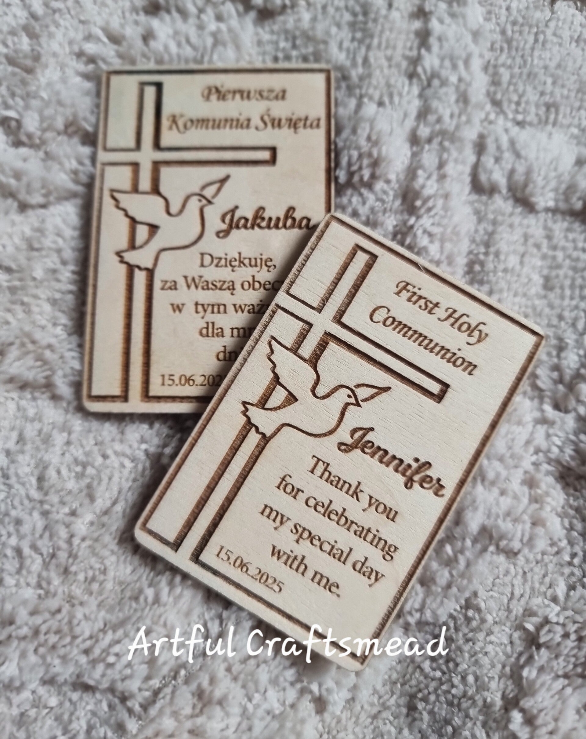 🌟 **Serdeczne magnesy z podziękowaniami z wzorem krzyża i gołębicy** 🌟