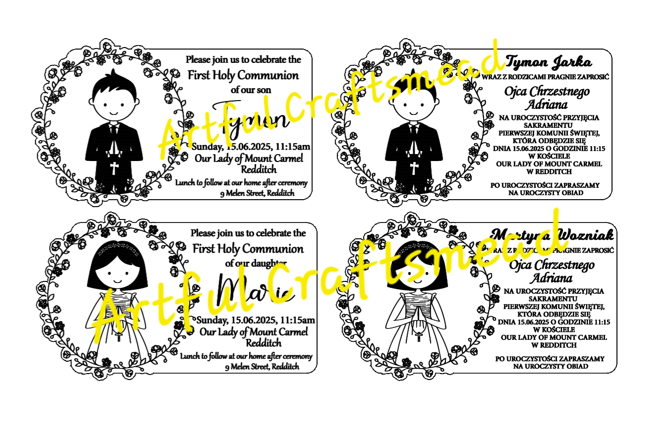 - **Personalized Text:** Customize the invitation text in either English or Polish. Add the names of your guests, and we'll copy and paste them in the right spots. Or, if you prefer, we'll leave a blank space for you to handwrite them! ✍️💌
