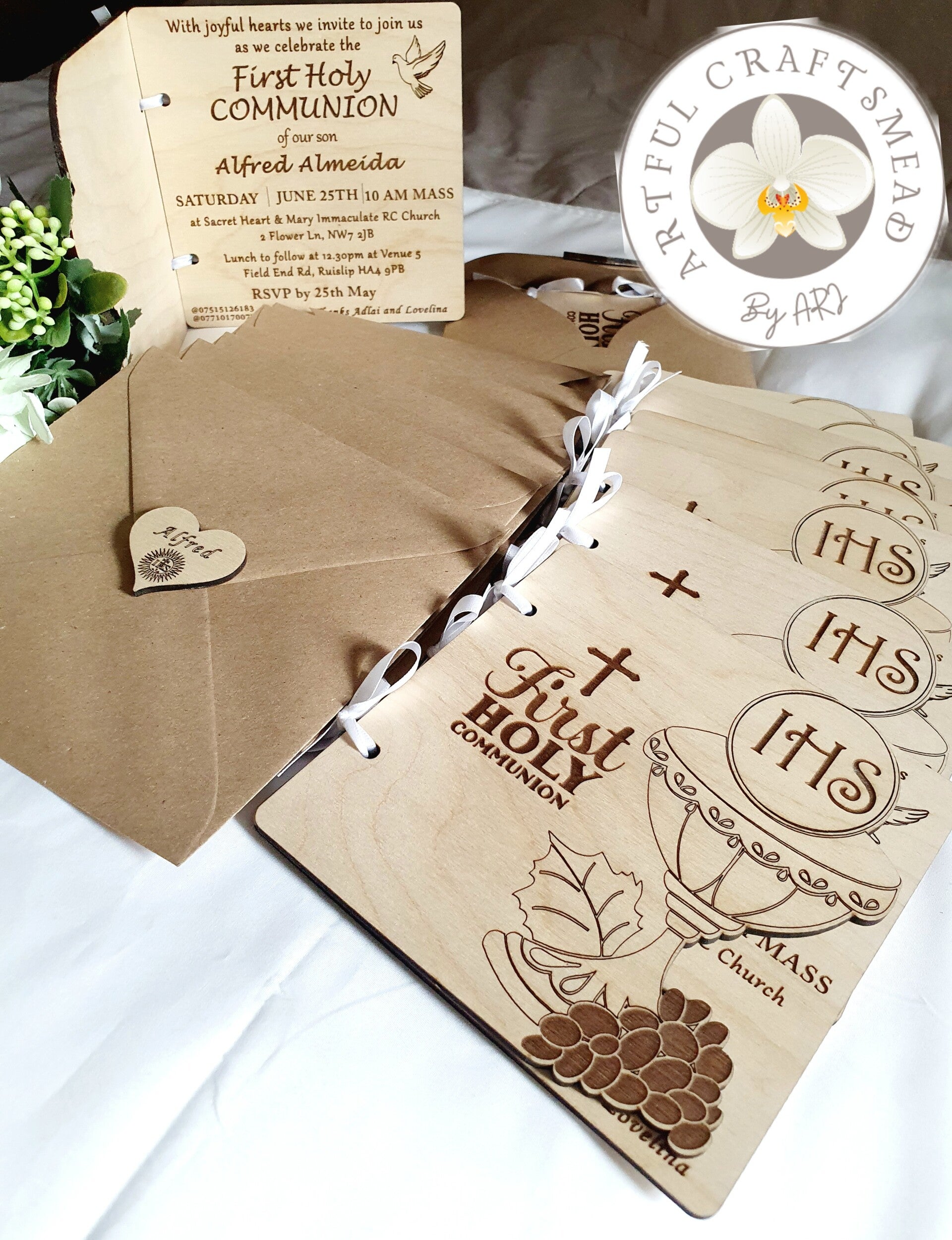 🎉✨ Introducing our stunning Personalised Wooden Communion Invitations – the perfect way to invite your loved ones to share in your special day! ✨🎉