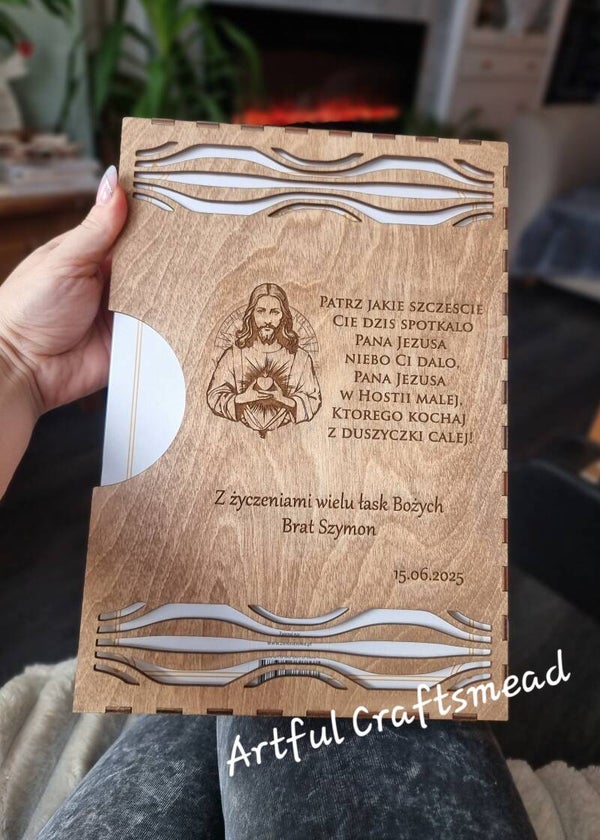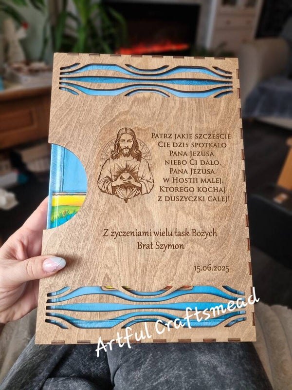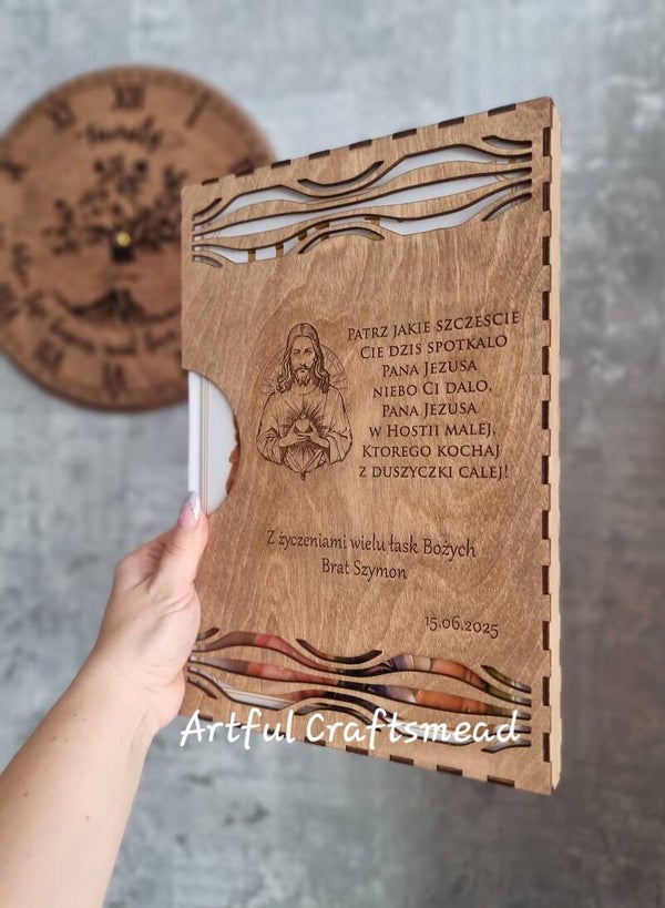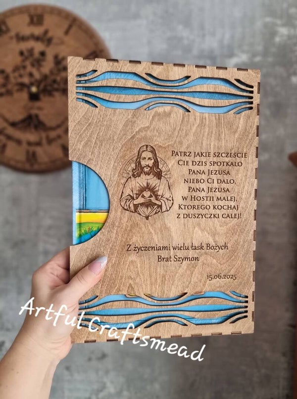 ## **Prezent tak wyjątkowy jak okazja – spersonalizowane drewniane pudełko na slajdy na Biblię lub wyjątkową książkę**