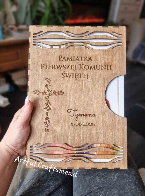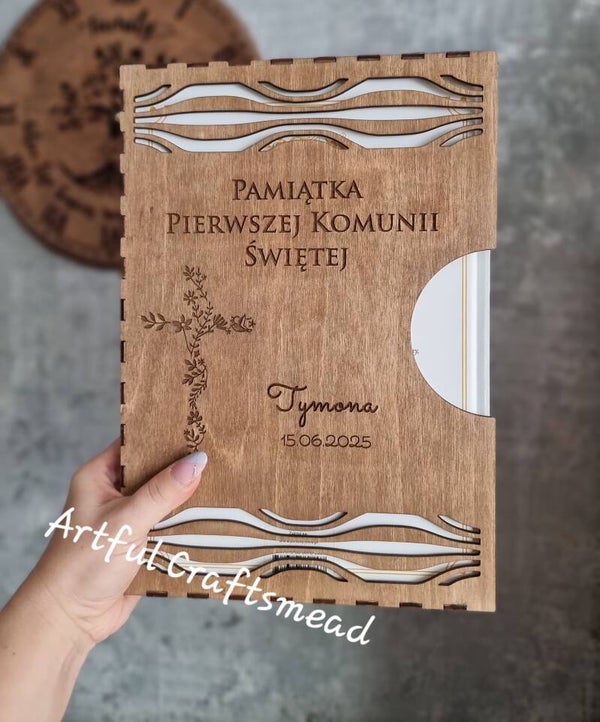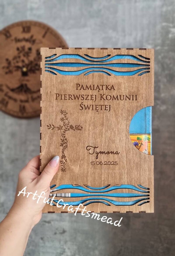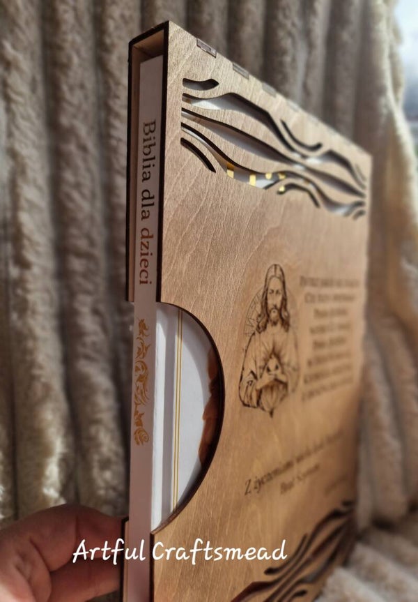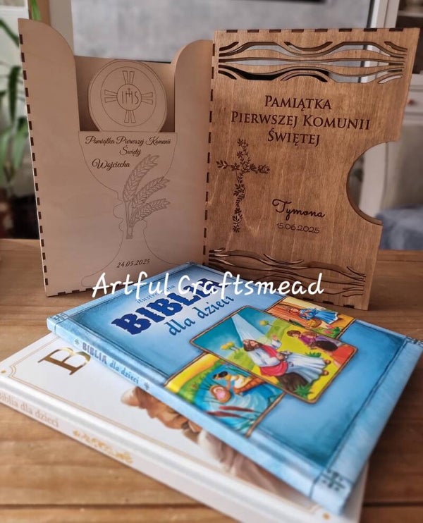 Personalized Wooden Slide Box for a Bible or Special Book, spersonalizowane drewniane pudełko na wsunięcie, na Biblię lub wyjątkową książkę