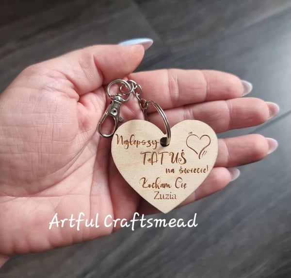 Szukasz małego, ale wyjątkowego prezentu dla swojego Taty? Ten drewniany breloczek w kształcie serca z wygrawerowanym tekstem to doskonały sposób, by wyrazić miłość i wdzięczność. ❤️