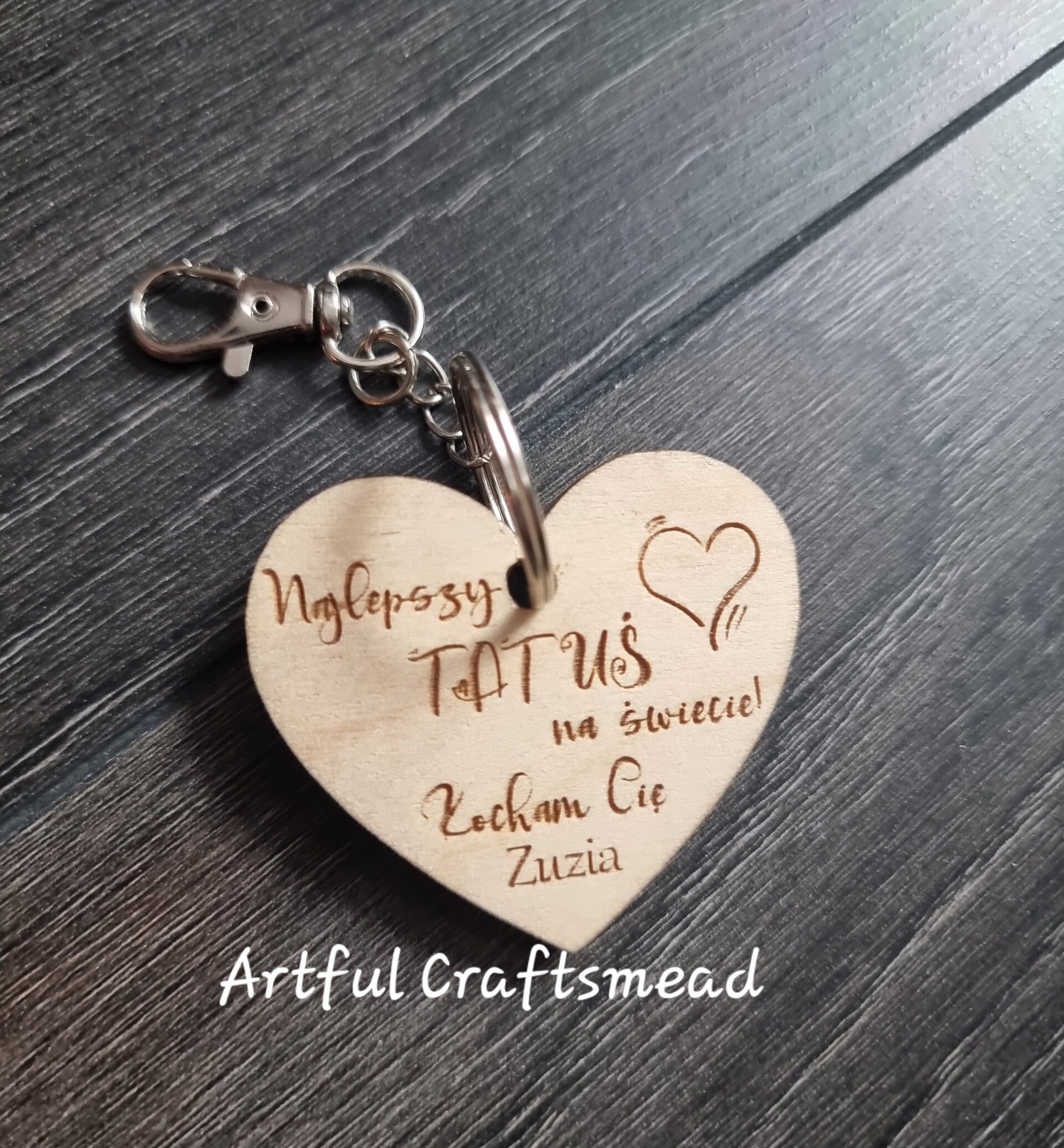 Keywords: Father's Day gift, wooden heart keyring, personalised keychain, gift for dad, engraved wood, custom dad gift