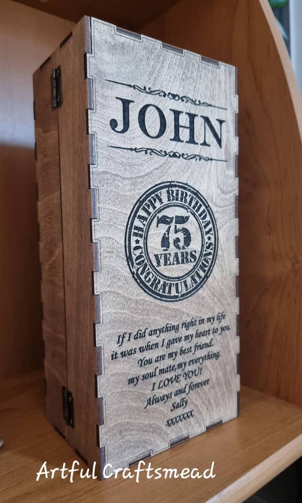Personalised Whisky Bottle Gift Box | Engraved Wooden Birthday Box | Custom Alcohol Case for Men | Laser Etched Plywood Whisky Crate